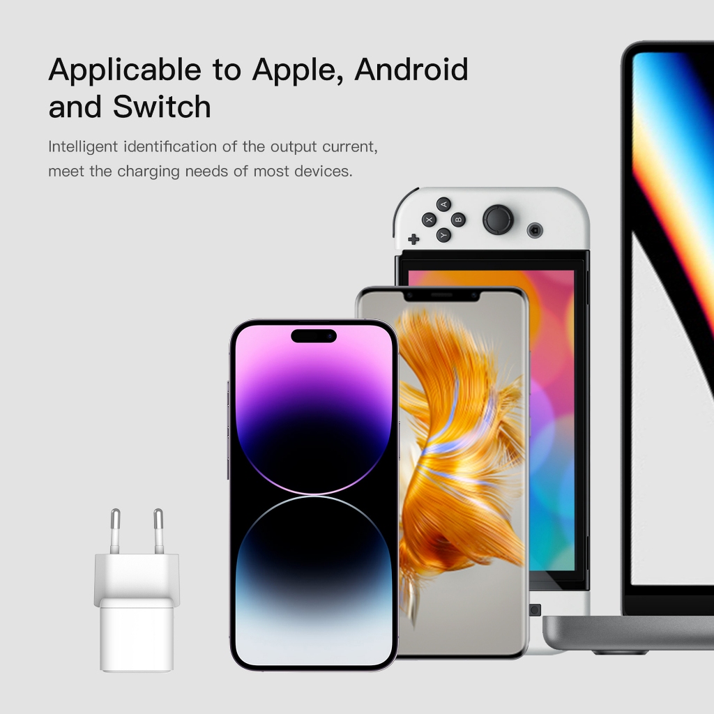 - Pengisi daya Super Si ini mendukung output 9V / 2.22A 20W dan menyediakan pengisian cepat USB PD untuk Apple.
