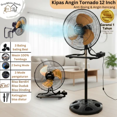 Kipas Angin Besi Tornado Fan 12” 3in1 Wall Fan Hemat Daya Kencang
