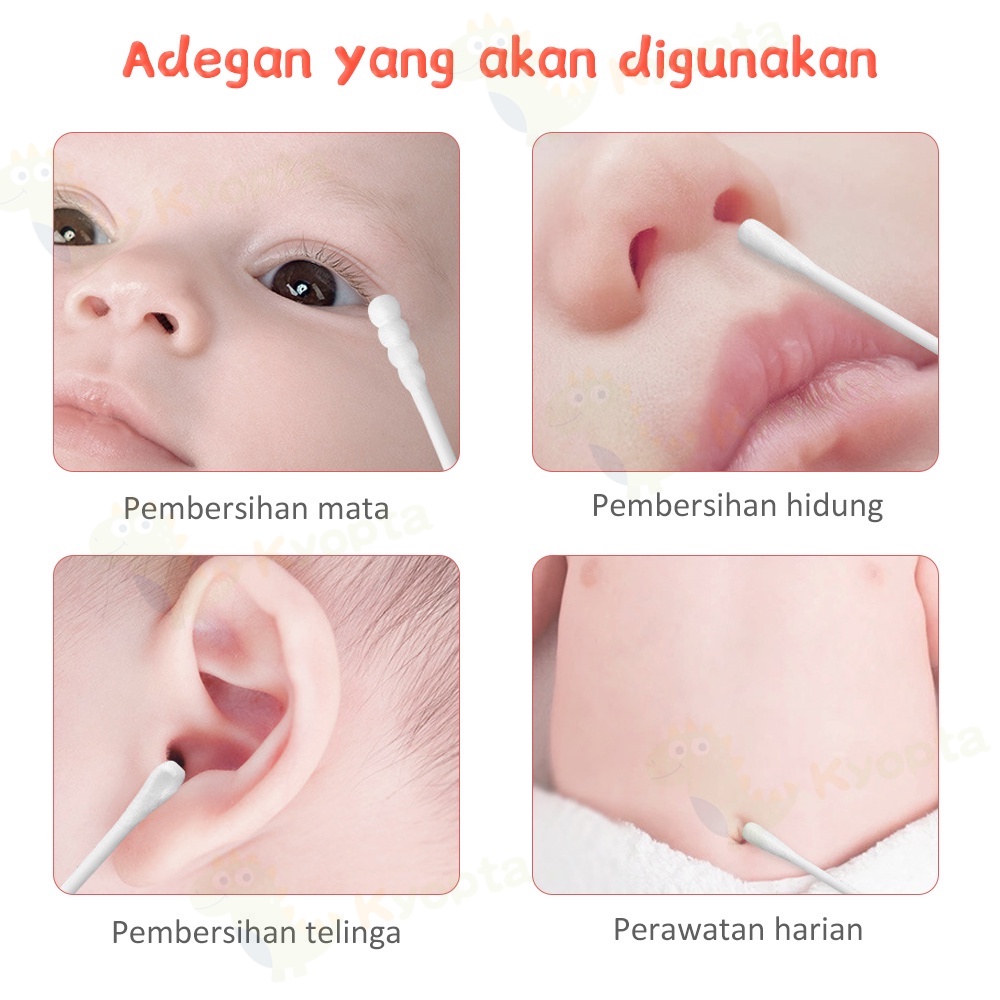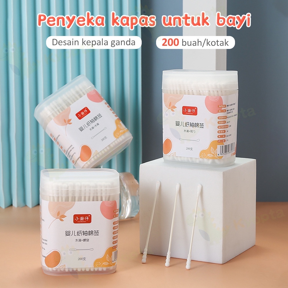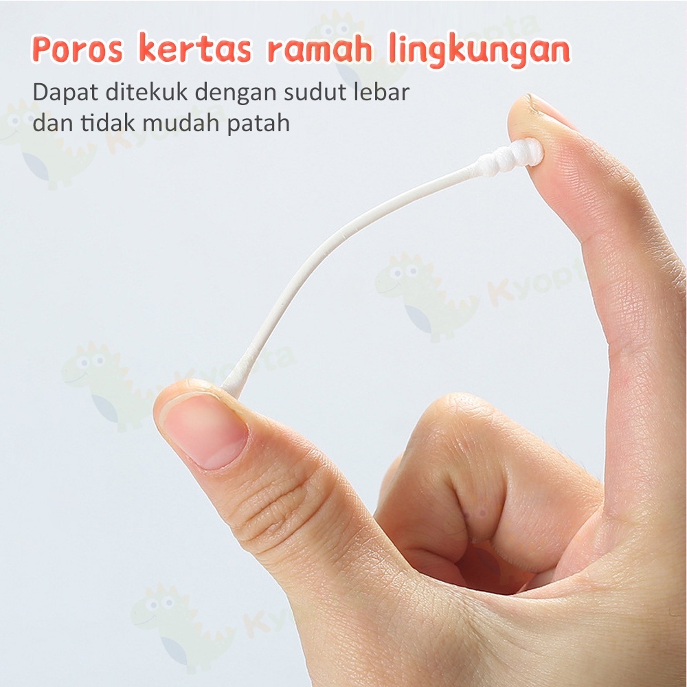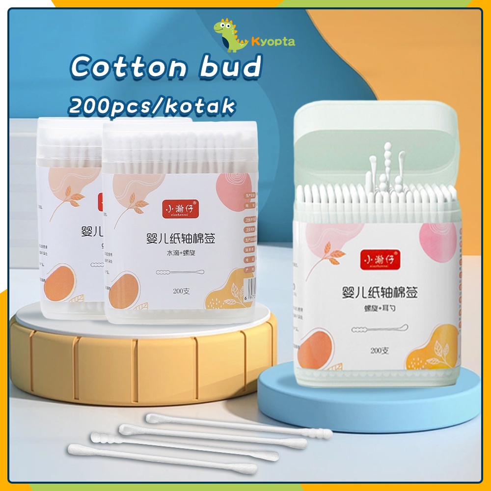 Kyopta 200pcs Cotton swabs Cotton bud Cotton bud ear pick dengan kotak