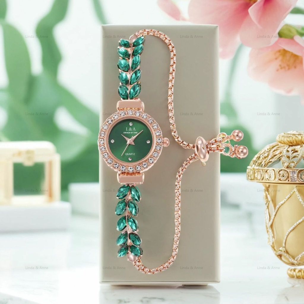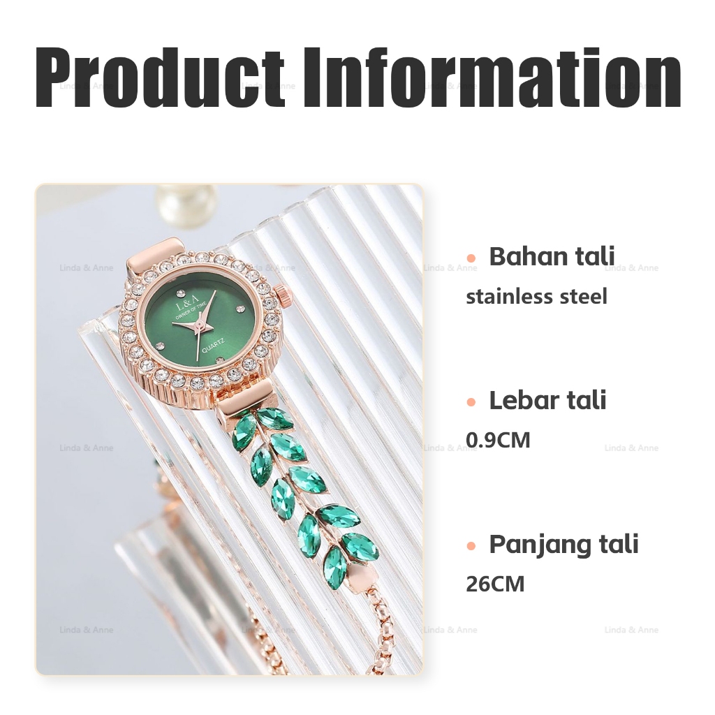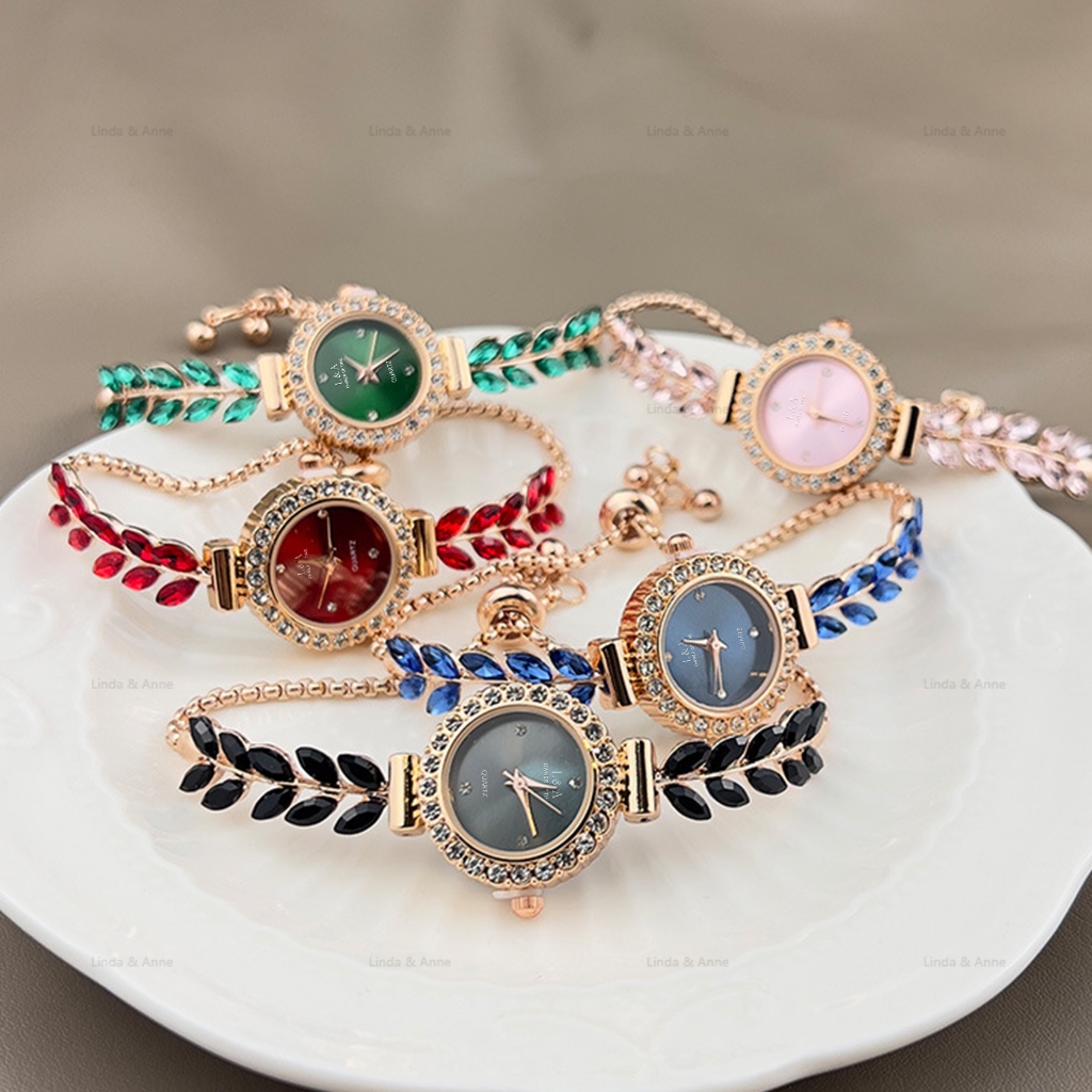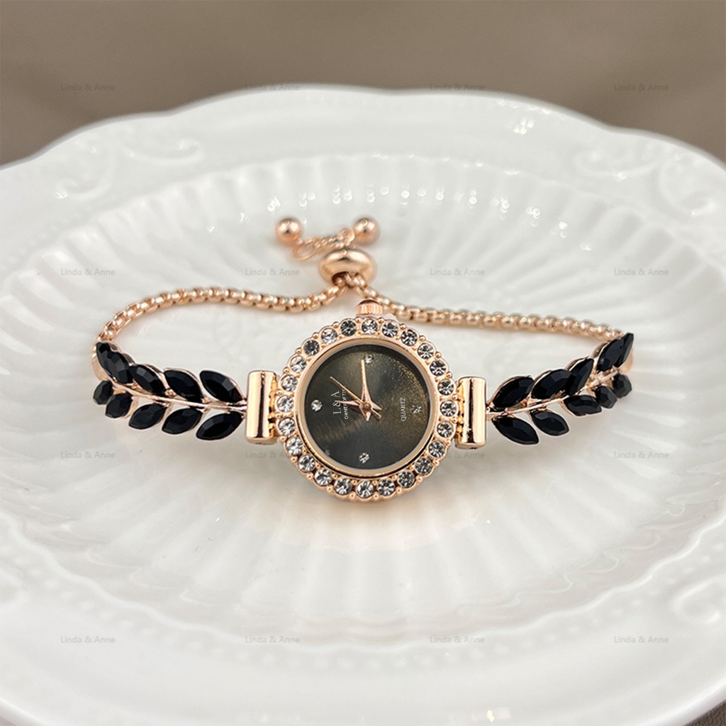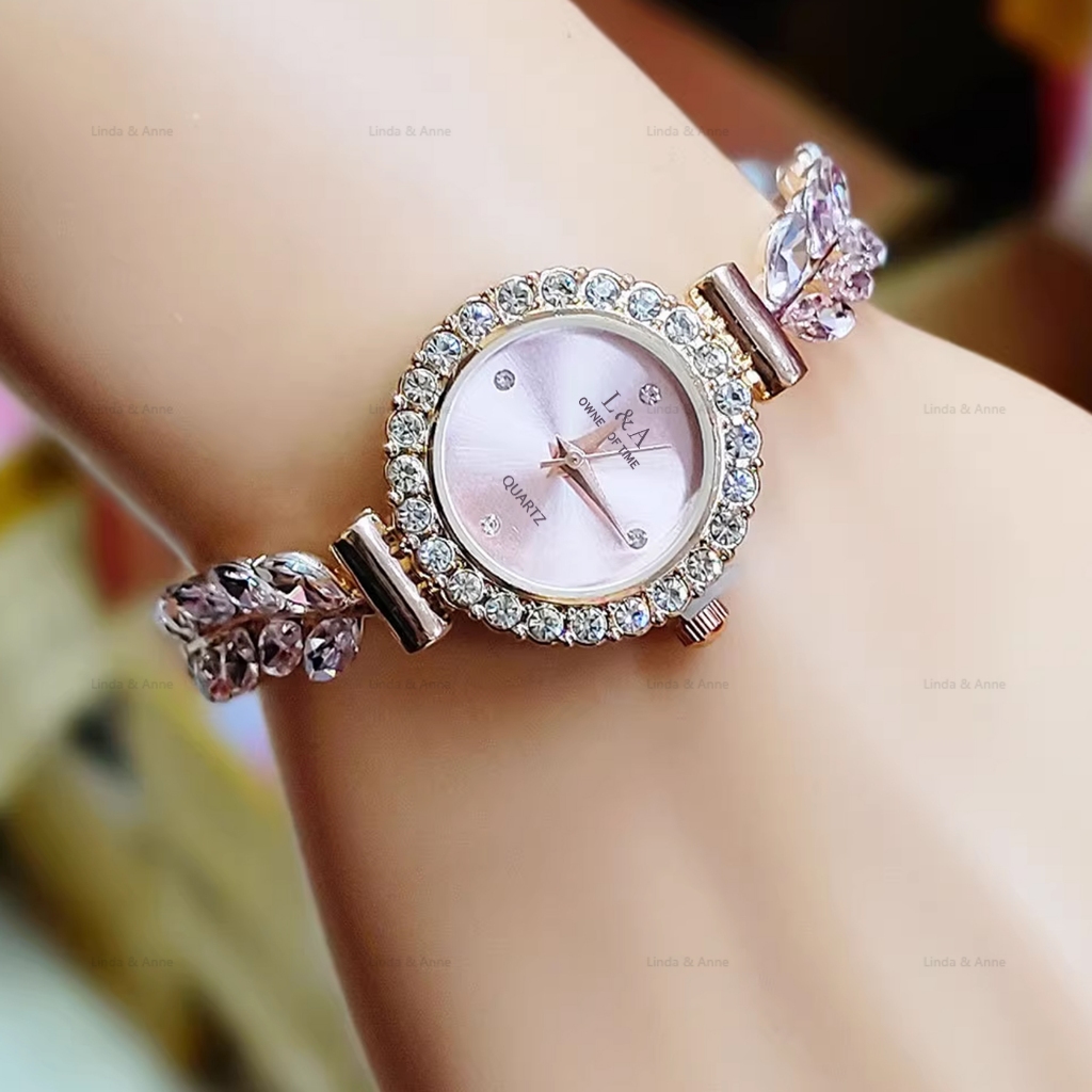 Beranda » Produk » L&A – Jam Tangan Wanita Serut Mewah Motif Bunga Aksen Permata Analog Wrist Watch Fashion