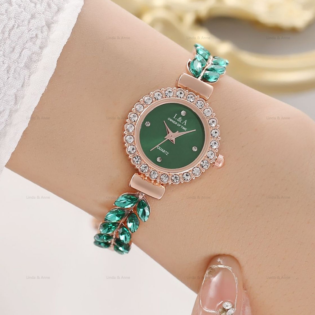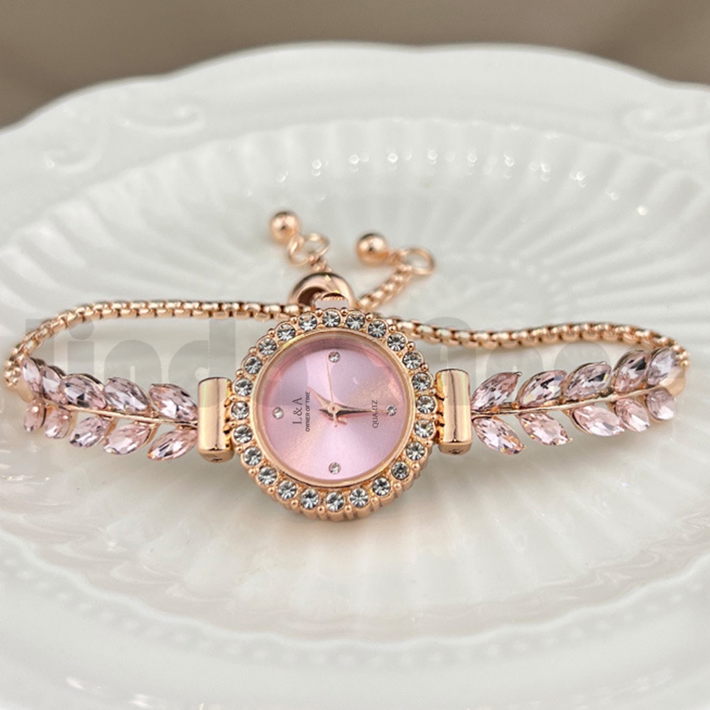 L&A – Jam Tangan Wanita Serut Mewah Motif Bunga Aksen Permata Analog Wrist Watch Fashion