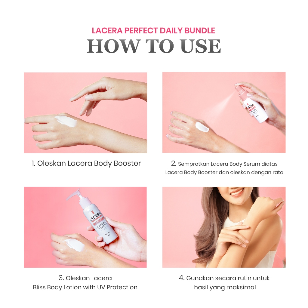4. Lanjutkan dengan Body Lotion setelah serum dan booster terserap, gunakan body lotion untuk menjaga kelembapan kulit.