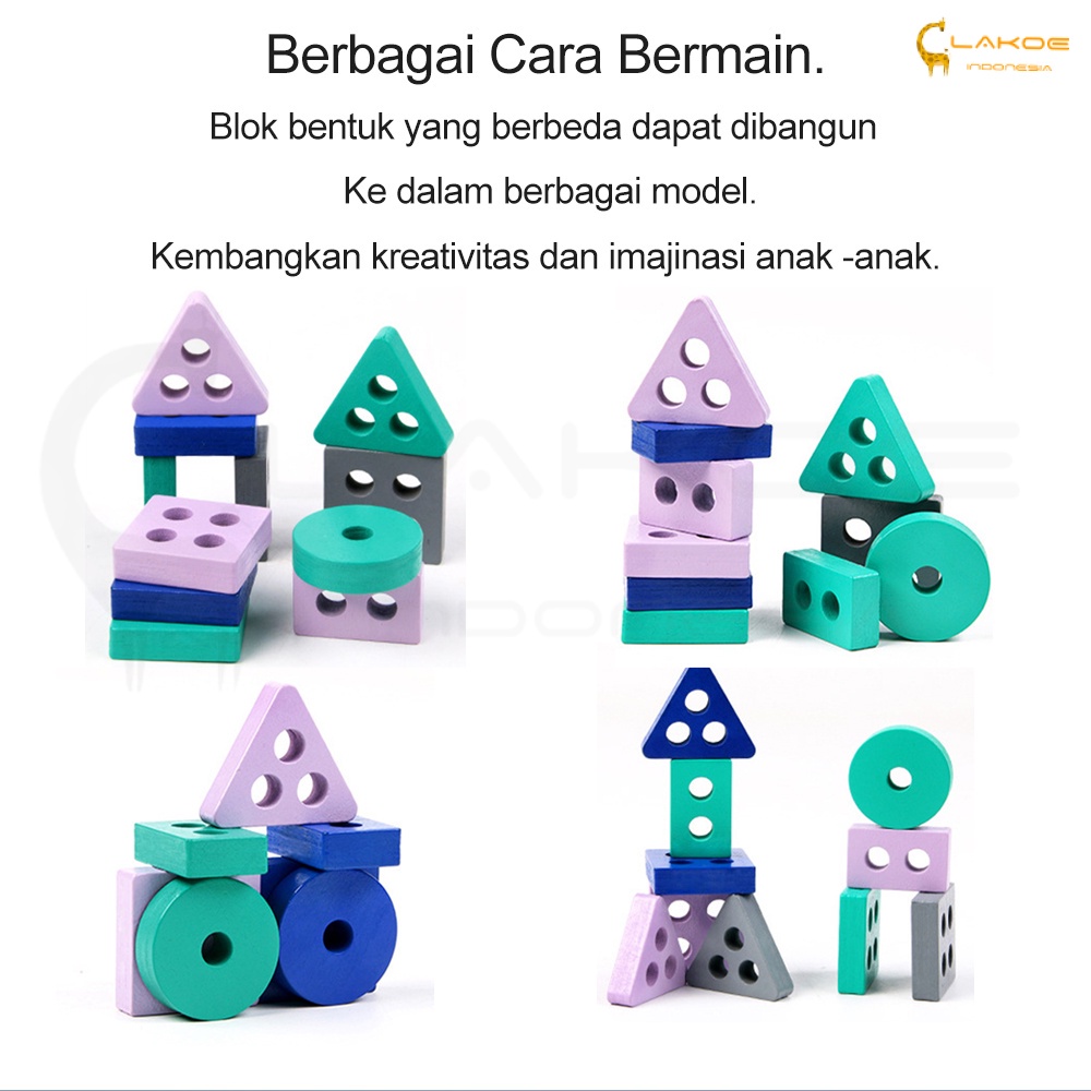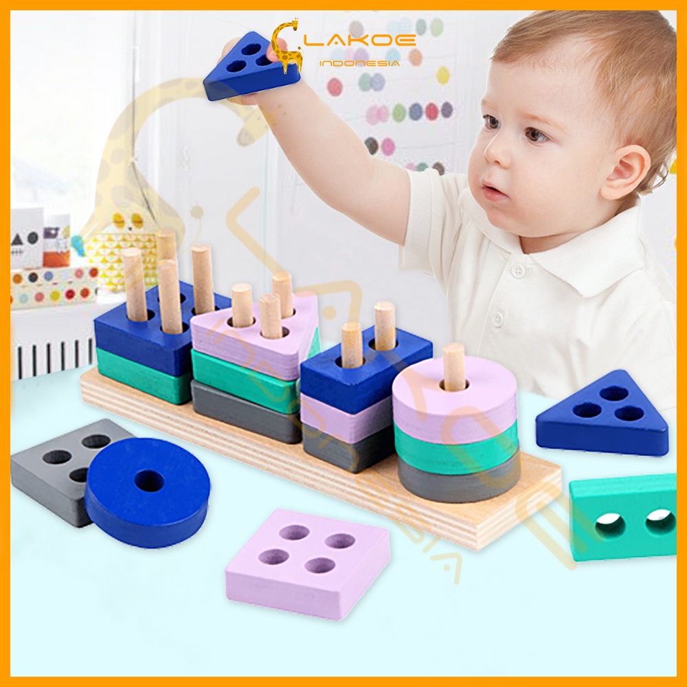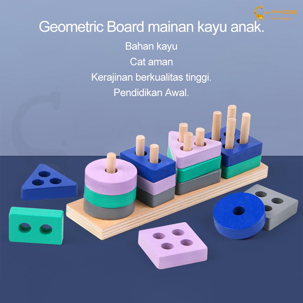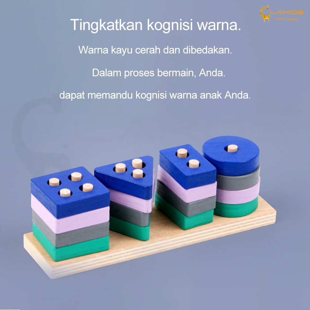 LAKOE Mainan puzzle kayu anak geometric board mainan balita Wooden Toys