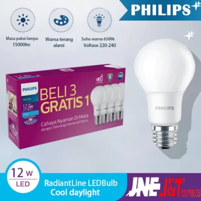 Lampu led philips 【3 gratis 1】Paket 14.5 Watt 8W 12W 6500K 【Cahaya nyaman】 low loss rumah Led Bulb