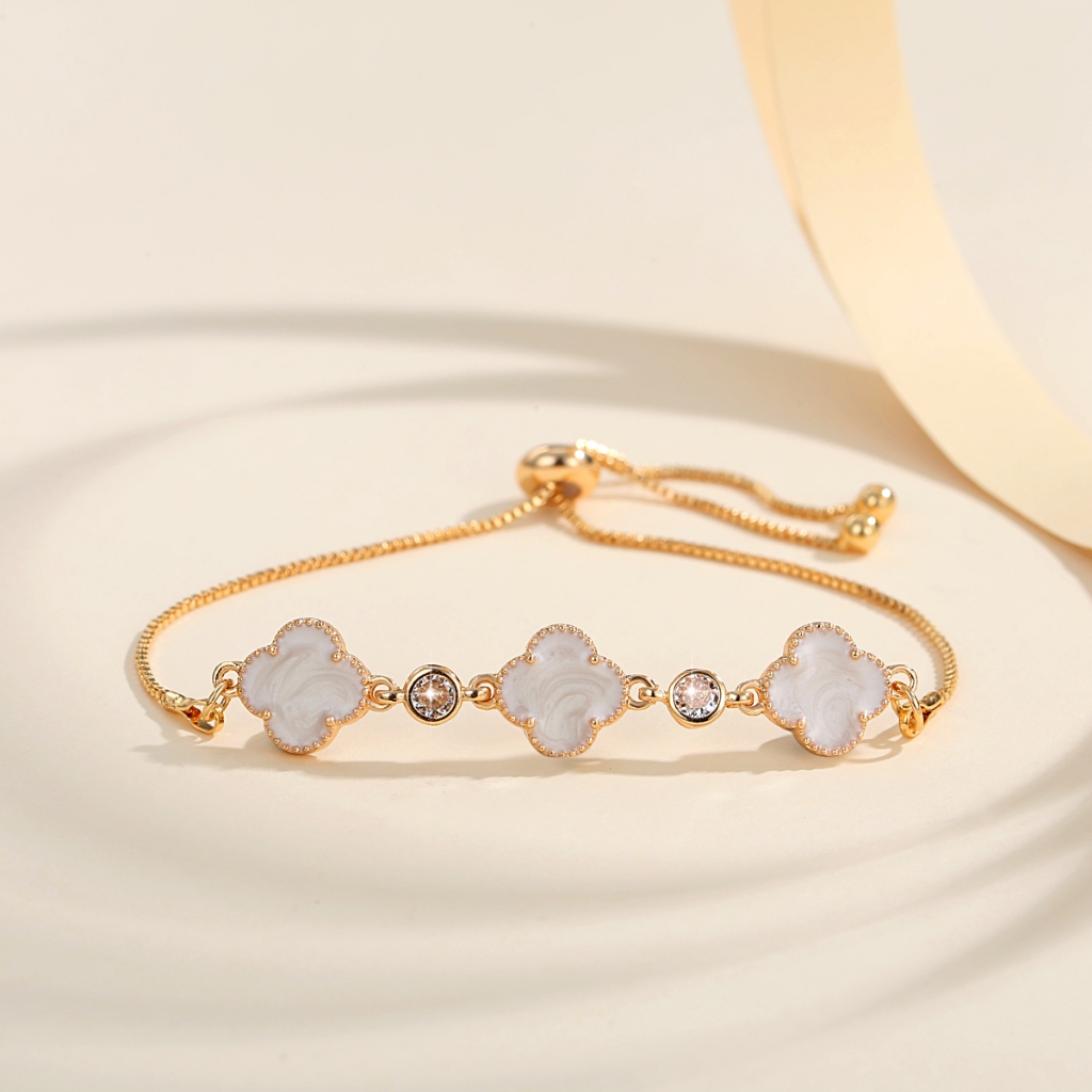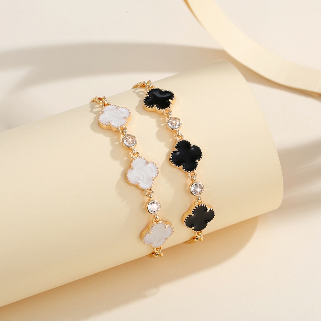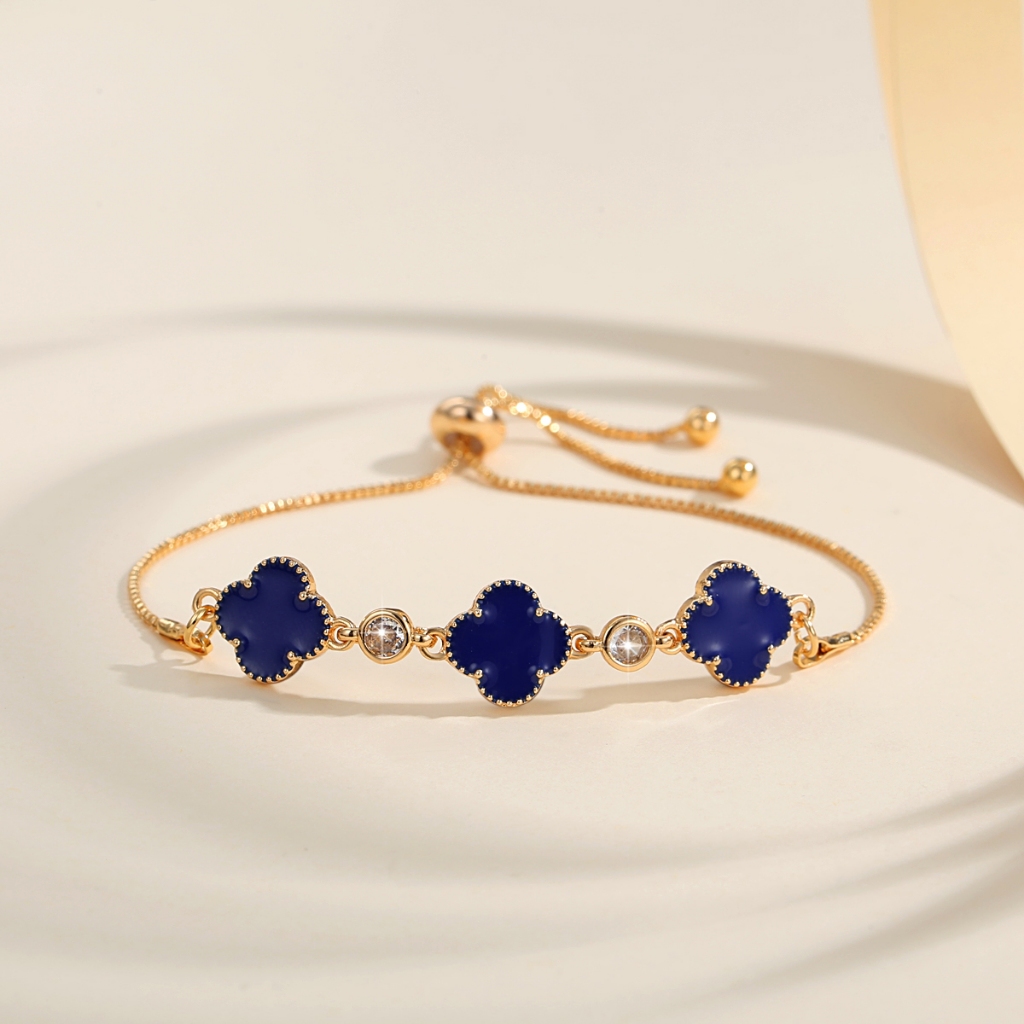 Lanme Jewelry Gelang Emas Titanium Wanita Gelang Tangan Clover Kristal Berlian Gelang Perhiasan Mewah LM213