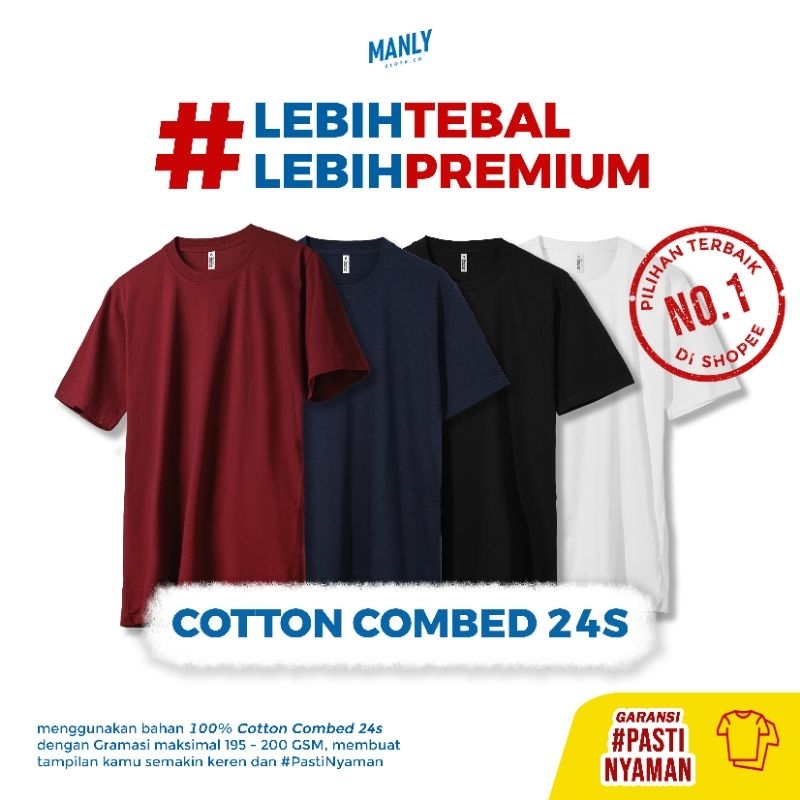 ( #LebihTebal ) Kaos Polos Cotton Combed 24S