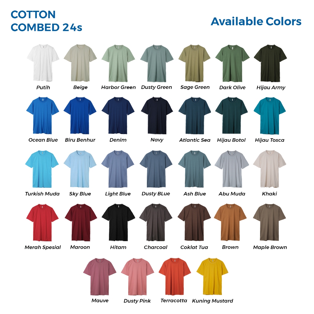 *menggunakan bahan Cotton Combed 24S dengan Gramasi Maksimal 195 ~ 200 gram
