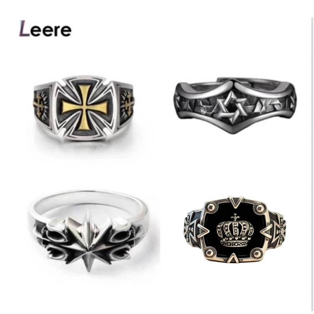 LEERE -Cincin Titanium Wanita Retro Silang Cincin Pria Hip Hop Gaya Ring Titanium Tungsten Couple Aksesoris Skena Fashion Untuk