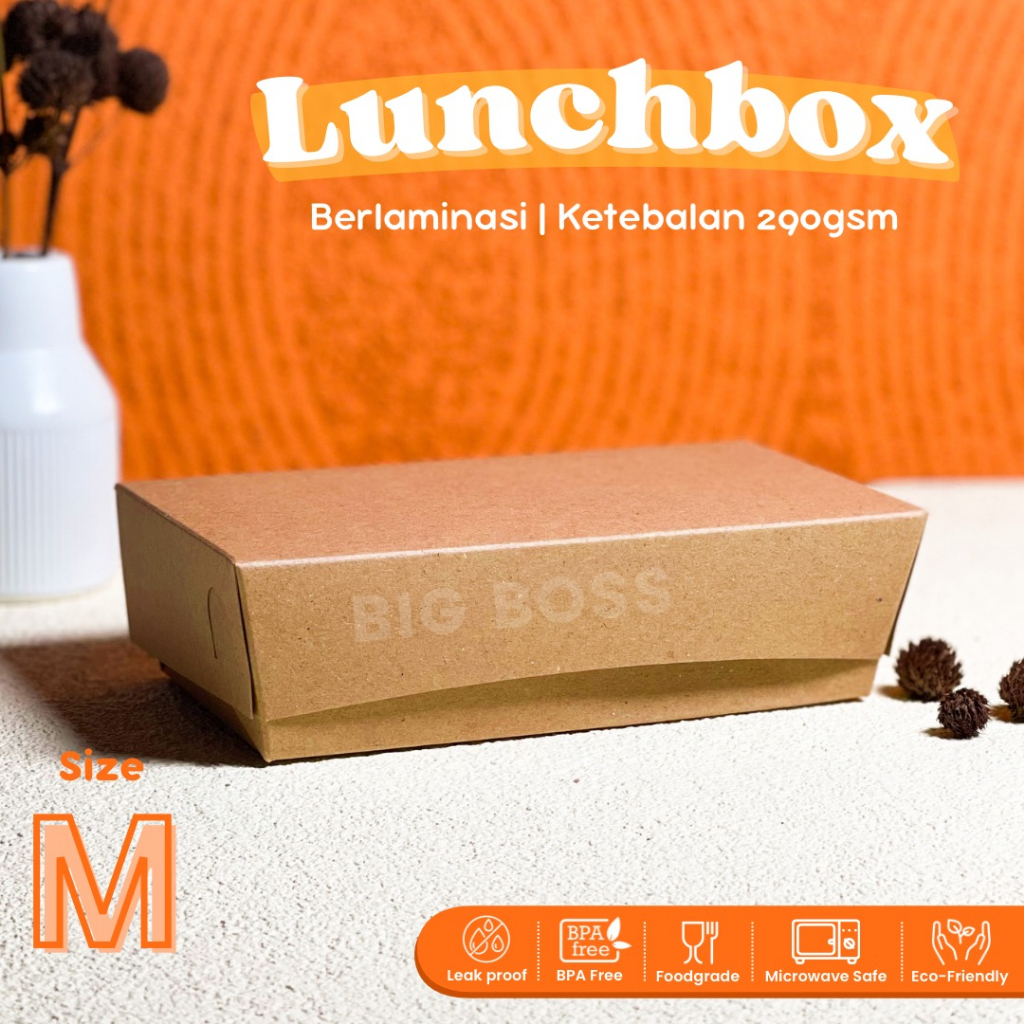Lunch Box Paper Kraft Coklat Laminasi Ukuran S/M/L Tebal 290gsm