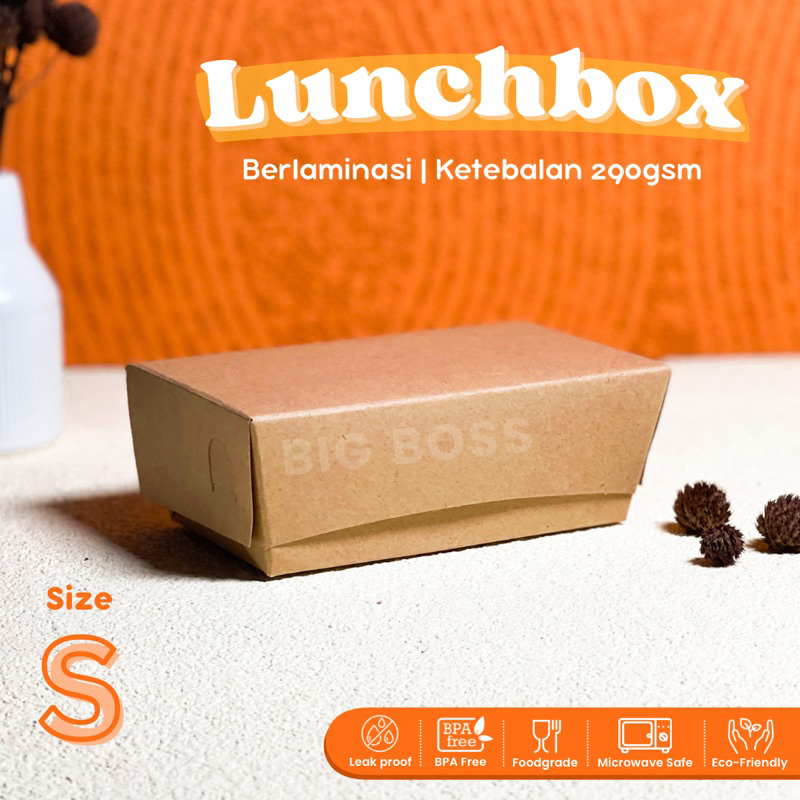 Paper Lunch Box Kraft Polos Laminasi / Kotak Makan Kertas Size S M L (SISTEM SELIP)