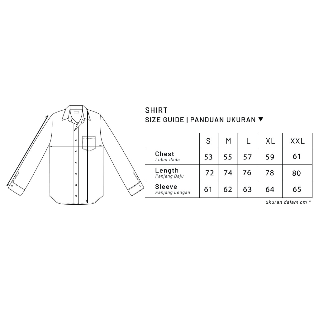 Lebar Dada (cm) x Panjang Kemeja (cm):