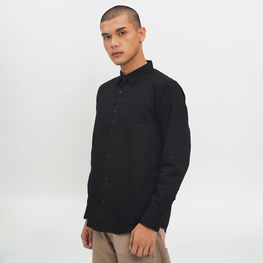 M231 Kemeja Pria Basic Polos Panjang Hitam 1468D