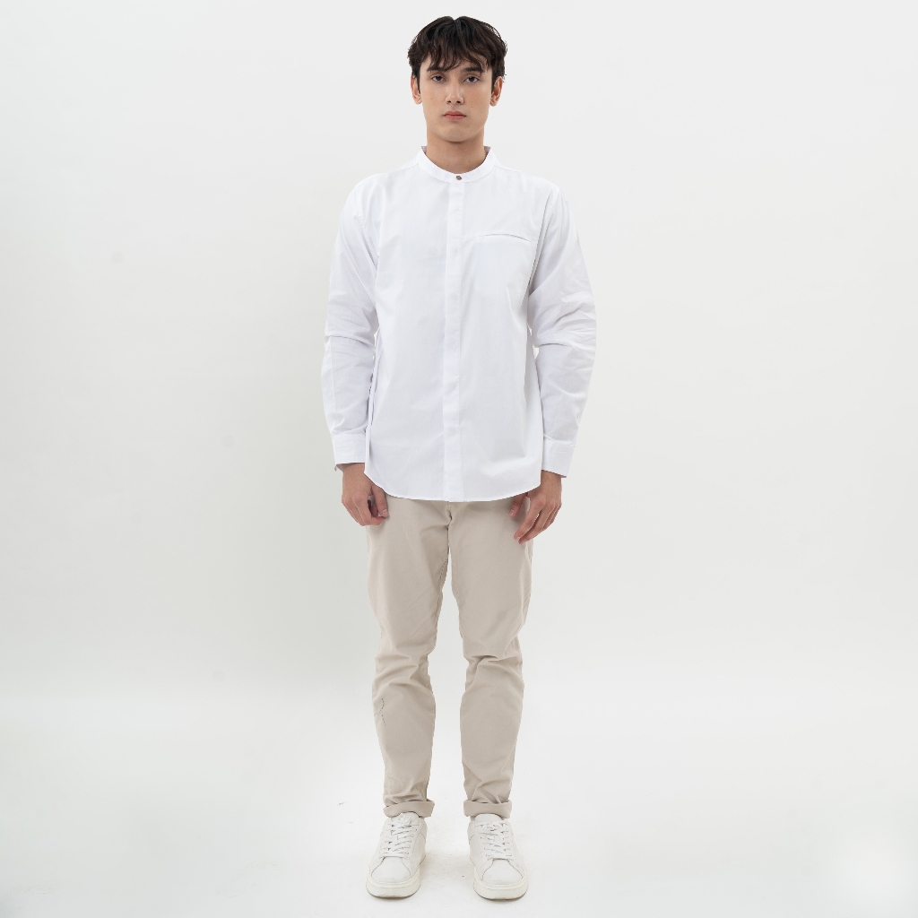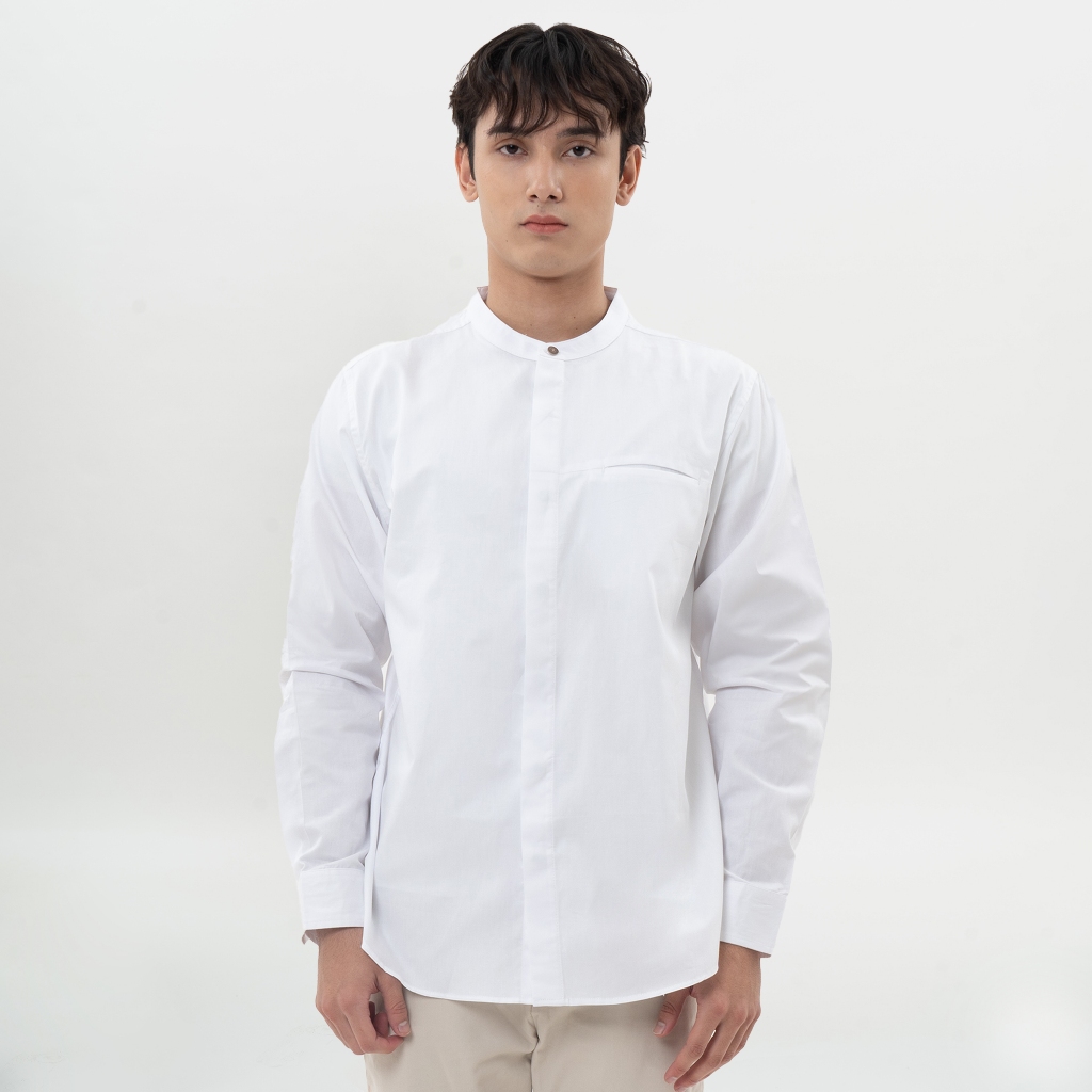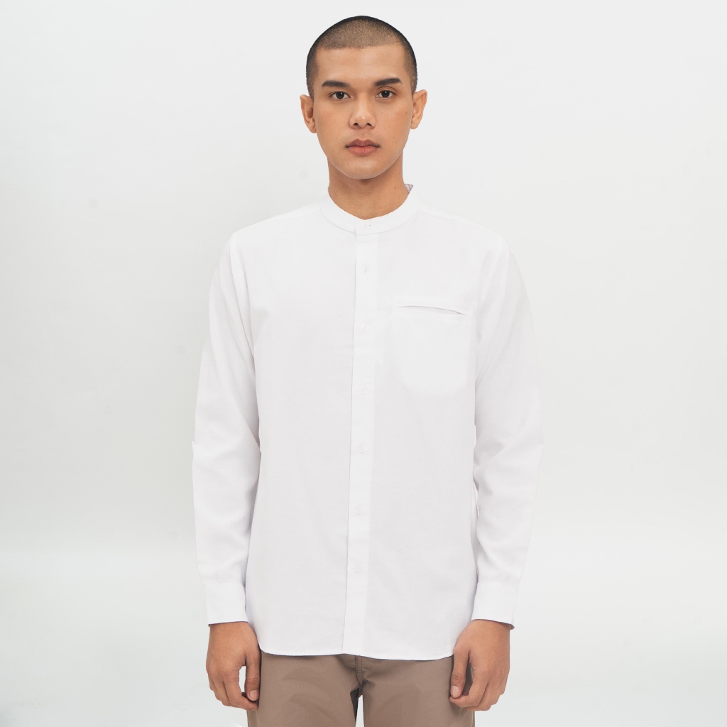 M231 Kemeja Pria Koko Shanghai Polos Oxford Panjang Putih 1552A