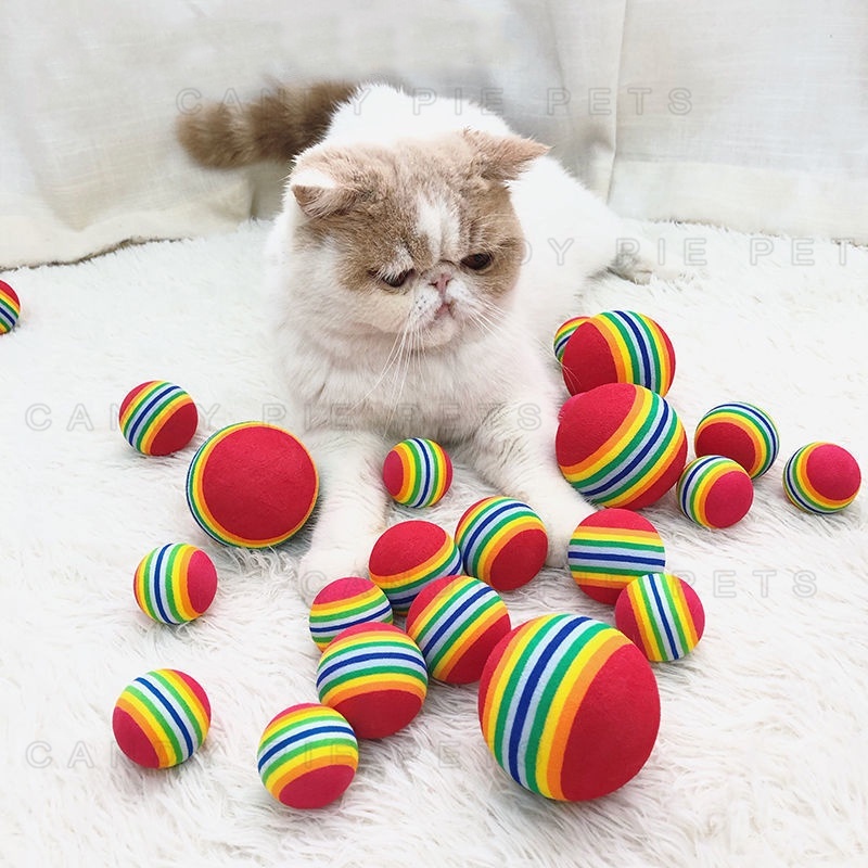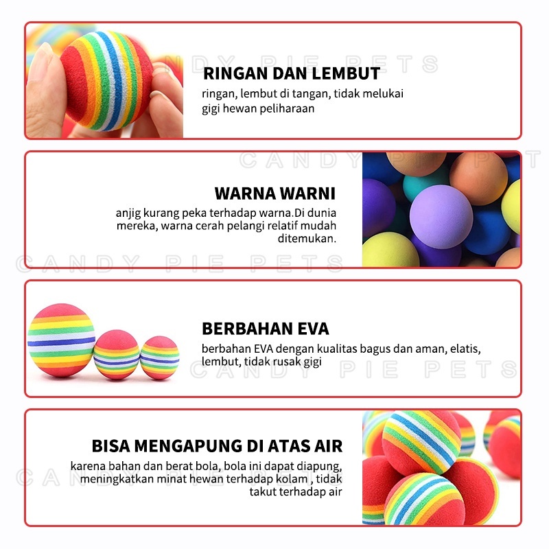 Karakteristik: warna-warni, bola dengan lonceng, mainan hewan peliharaan