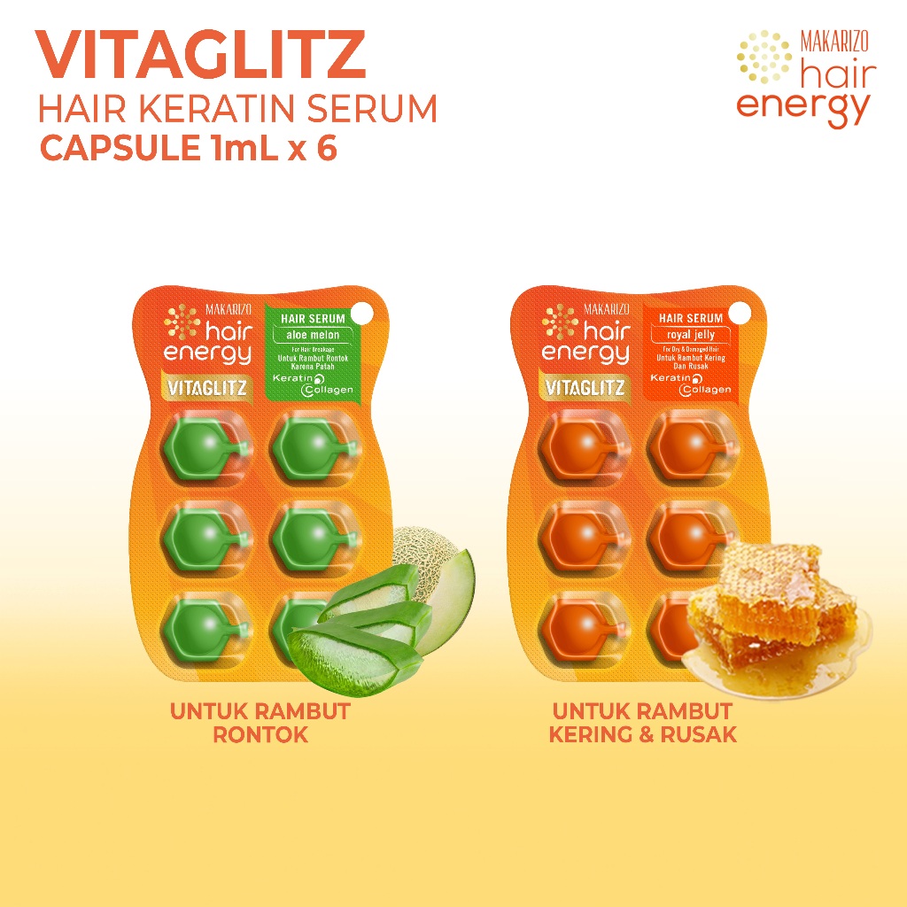 Makarizo Hair Energy VITAGLITZ Hair Keratin Serum ROYAL JELLY - Serum Rambut / Vitamin Rambut Kapsul 6 x 1 mL