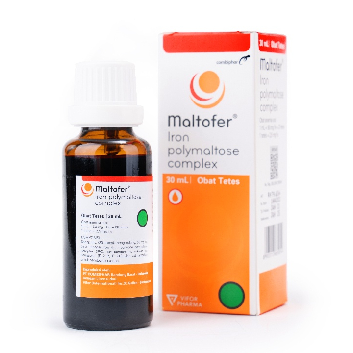 Maltofer Drops dengan kandungan IPC (Iron Polymaltose Complex) untuk memenuhi kekurangan zat besi. Maltofer Drops dapat dikonsumsi bersama dengan makanan.