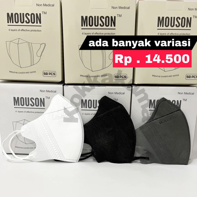 Masker duckbill merek Mouson isi 50Pcs dapat box. (4Ply)