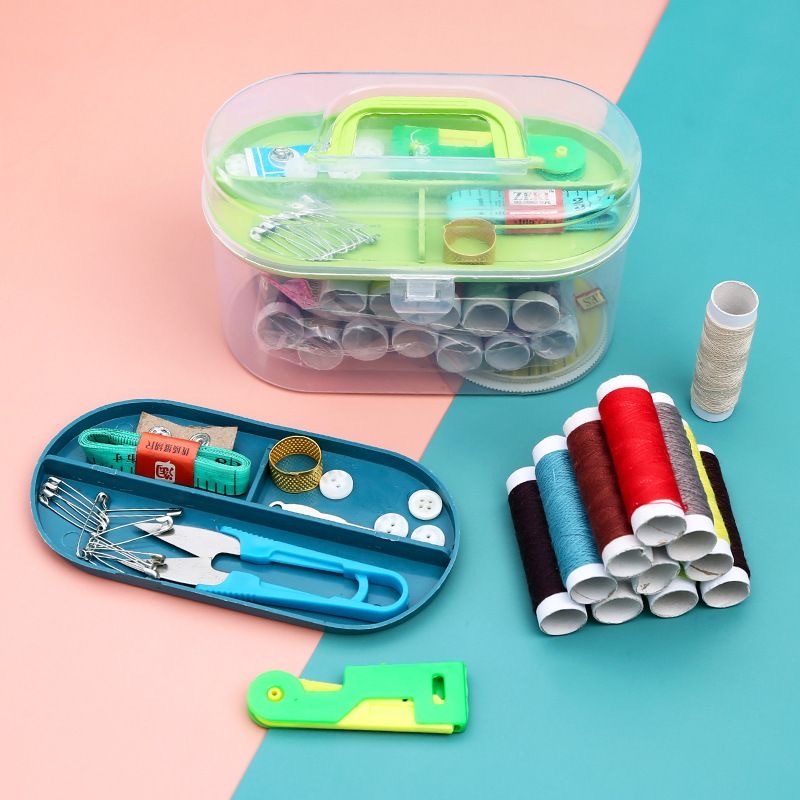 Beranda » Produk » Menjahit Baju Sewing Box / Alat Jahit Kotak Set Lengkap / Paket Perlengkapan Menjahit/Set Alat Peralatan Jahit Menjahit Baju Sewing Box Benang Jarum Kancing Peniti Kit Gunting