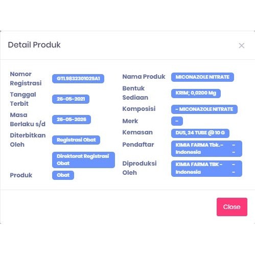 Komposisi : Tiap gram mengandung Miconazole Nitrate 0,02 gram