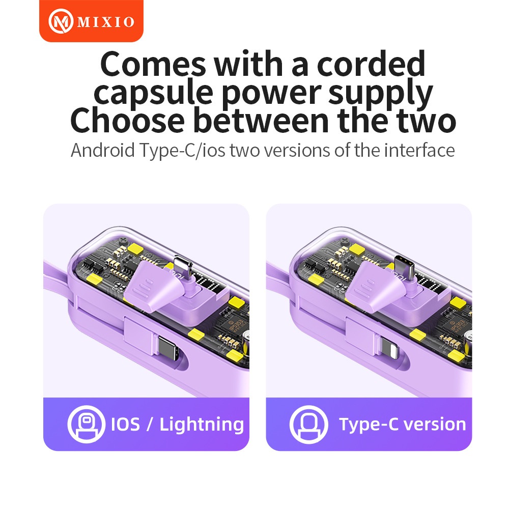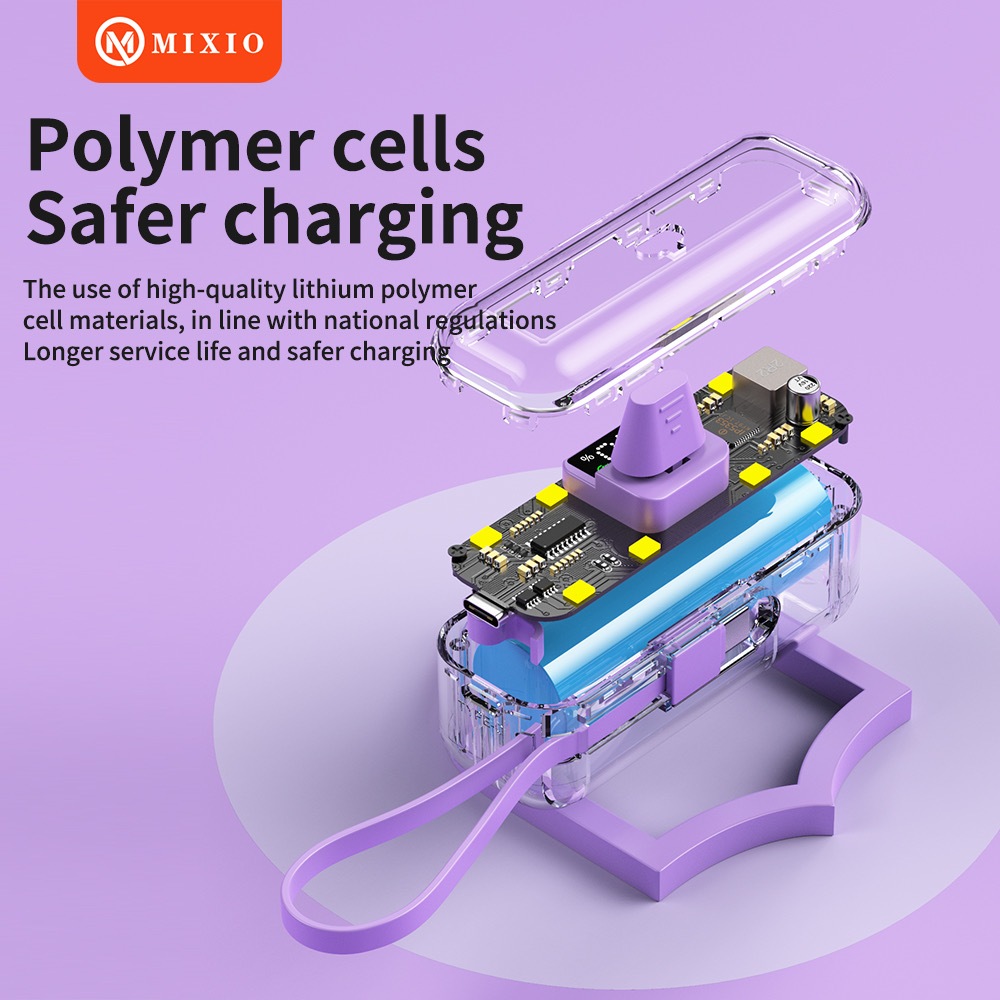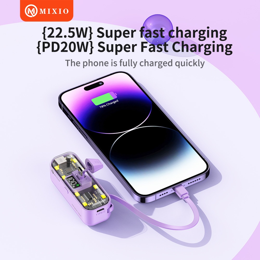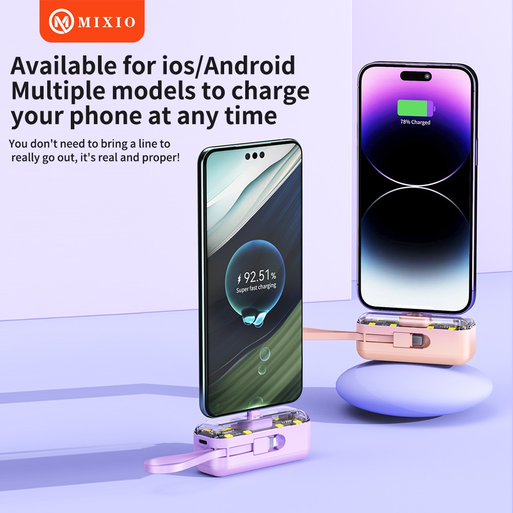 Beranda » Produk » MIXIO MP-04 Powerbank 5000mAh Portable Mini Transparan Lightning ios Type C PD Fast Charging With LED