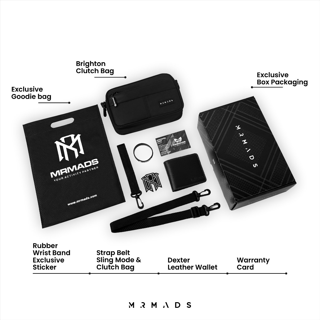 Mr Mads – Sling Bag Pria BRIGHTON Clutch Bag Multyfungsi 3 in 1 Hand Bag Cowok Waterproof Tas Tangan Anti Air Sling Bag Kulit Waistbag