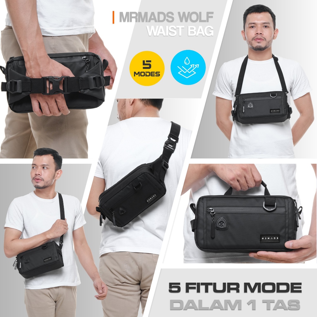 Mr Mads – Wolf Waist Bag – Tas Selempang Pria Tas Pinggang Clucth Bag Shoulder Bag Sling Bag Hand Bag Chest Bag (Bisa Dijadikan 5 Model) – Waterproof