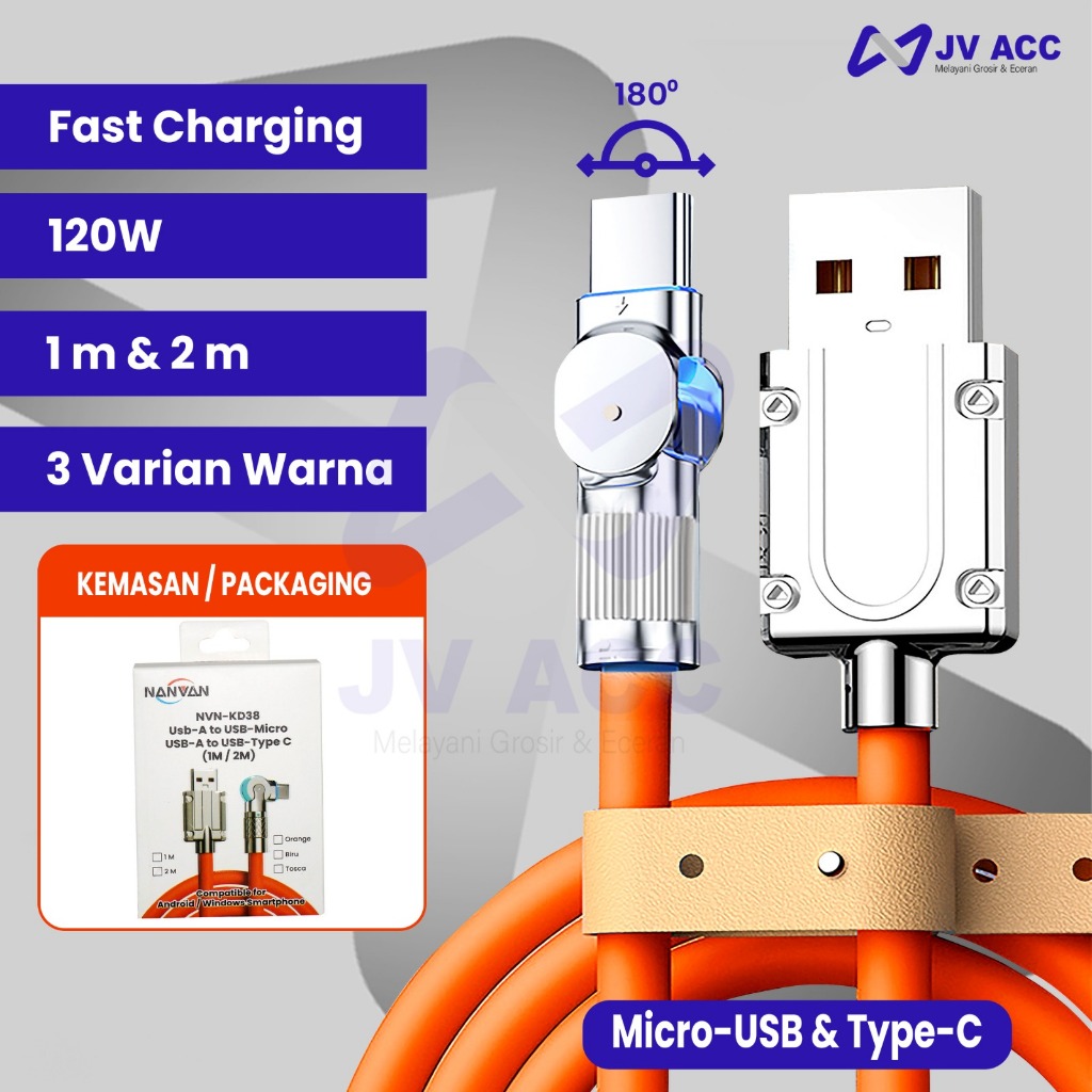 NVN-KD38 L ROTATE KABEL CHARGER GAMING FAST CHARGING 6A TYPE C / MICRO USB 120W