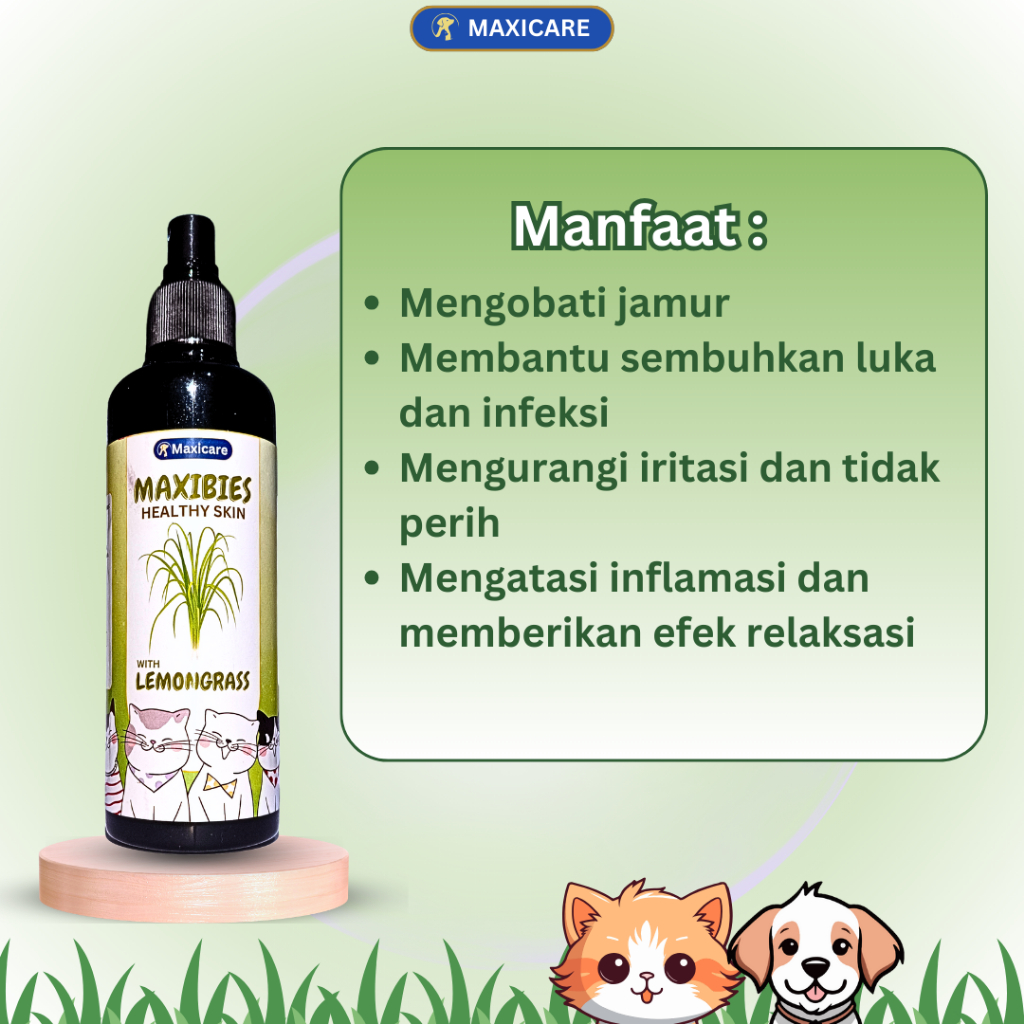 MAXICARE Anti Scabies Obat Jamur Kucing Anjing dan Permasalahan kulit Lainnya, Gudik Demodek Impetigo Kutu adalah obat kulit kucing yang sangat efektif untuk mengatasi berbagai masalah kulit seperti gudik, jamur, demodek, impetigo dan kutu. Diformulasikan khusus untuk hewan peliharaan Anda yang mengalami masalah kulit.