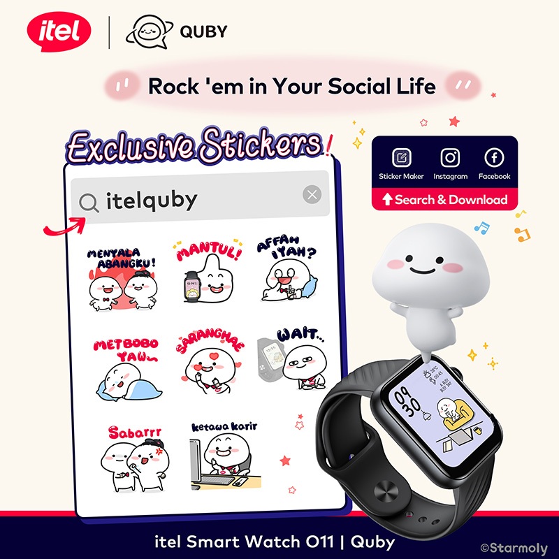 Official itel & Quby Smart Watch ISW-O11 3 Active | Tahan Air 5ATM 100 Mode Olahraga & Outdoor SpO2 Telepon Bluetooth
