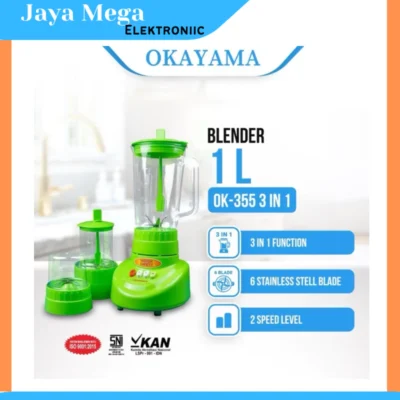 Beranda » Product » OKAYAMA 1 Liter Blender 3in1 Plastik Hijau OK-355