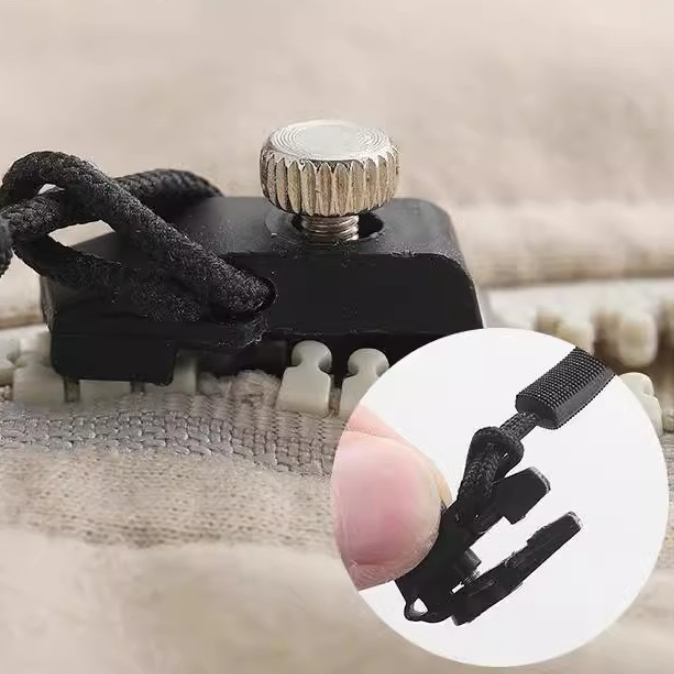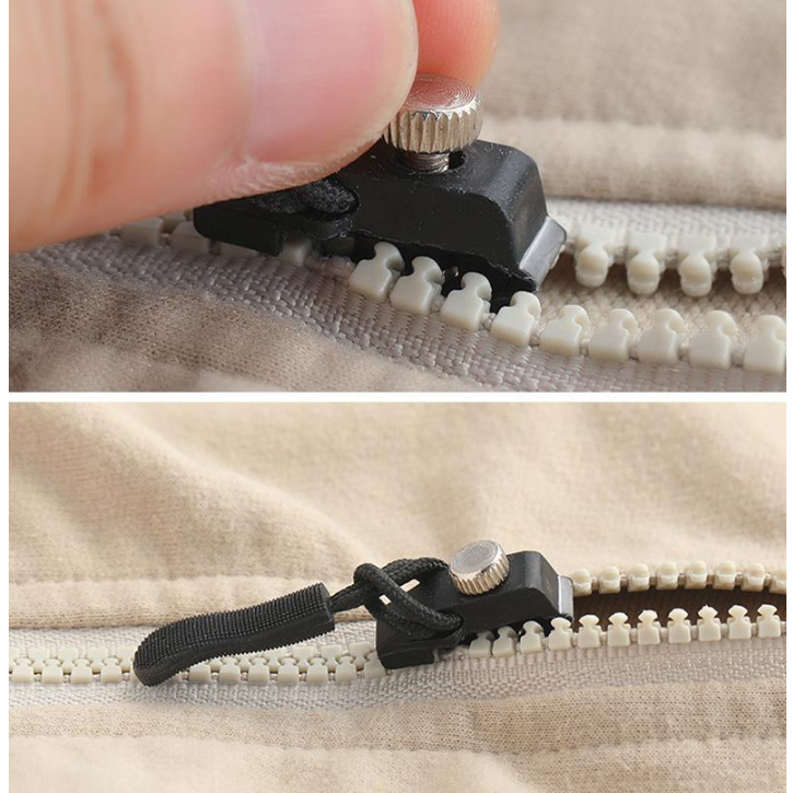 Pemasangan resleting yang mudah dan dapat dilakukan sendiri. Tidak ada alat yang di butuhkan untuk menjahit , tinggal Snap-on dan sekrup sederhana untuk memperbaiki resleting yang rusak, dan hilang. Tersedia warna hitam.