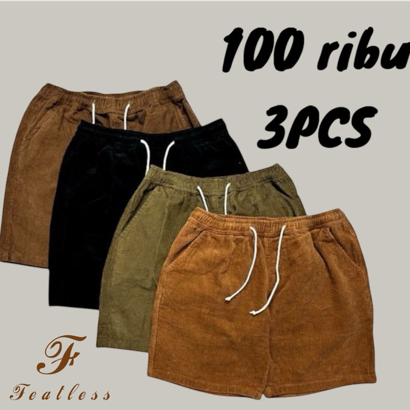 paket 3 pcs celana pendek motif corduroy pria wanita premium quality celana santai unisex