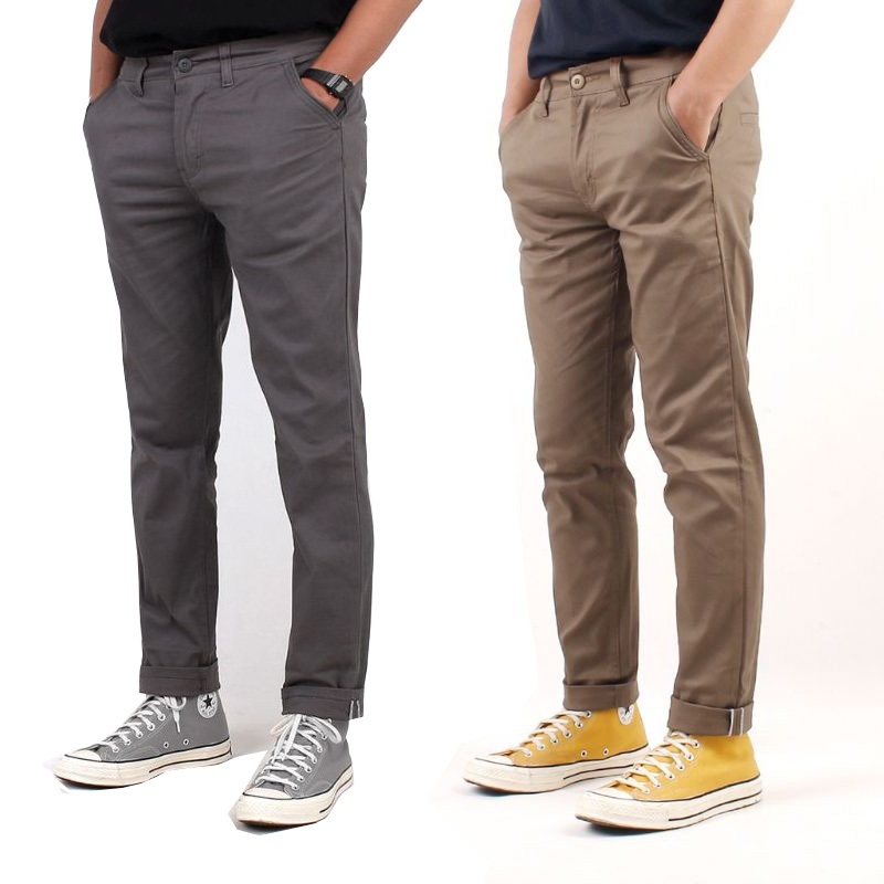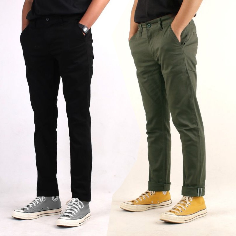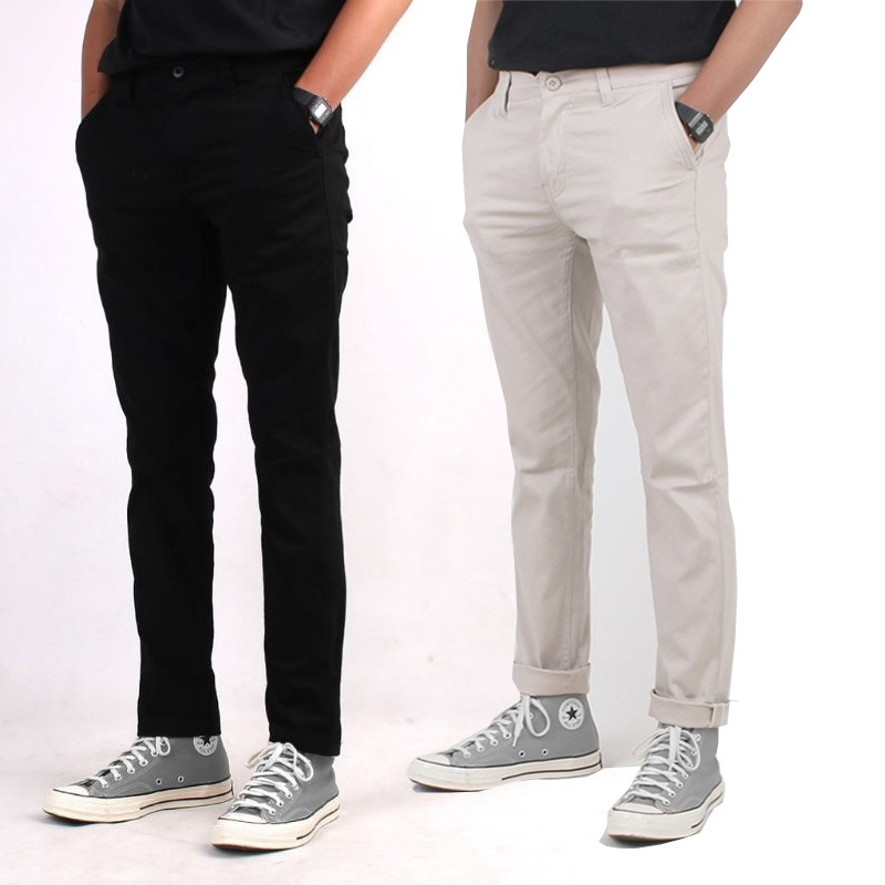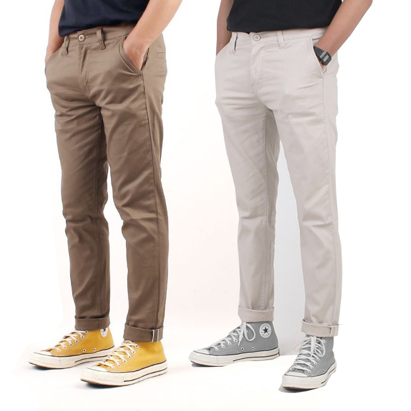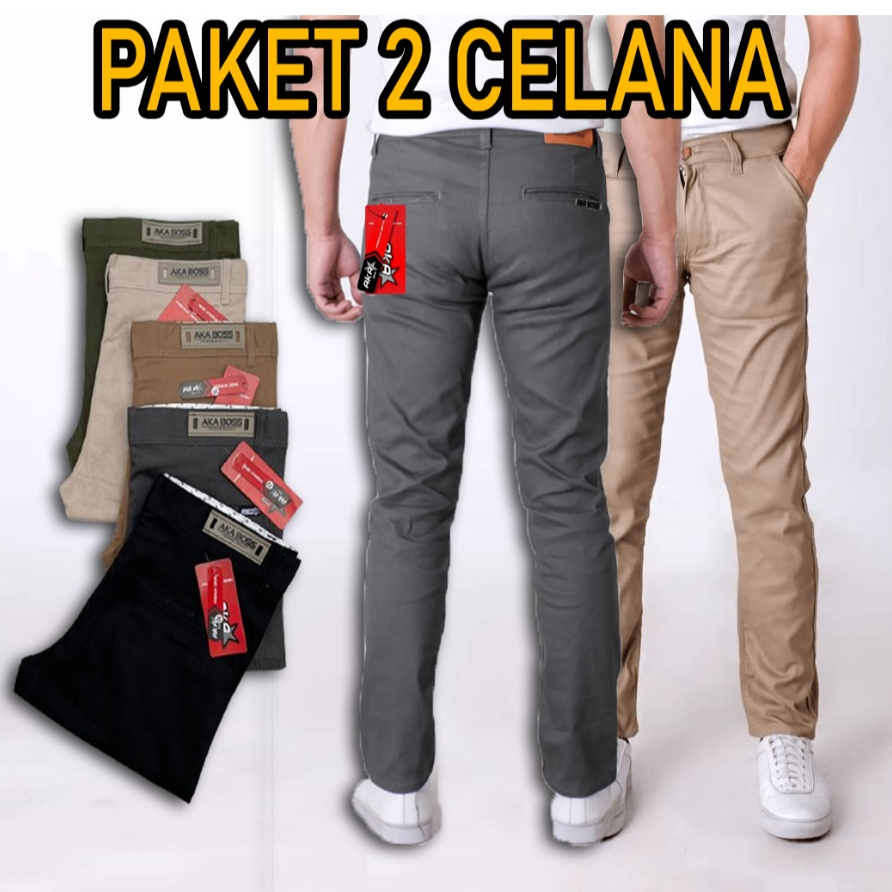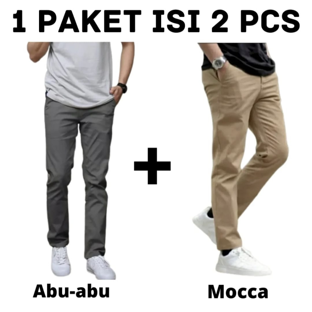 PAKET HEMAT 2PCS 100RIBU CELANA CHINO PANJANG SLIM FIT BAHAN COMBED MELAR PRIA DEWASA