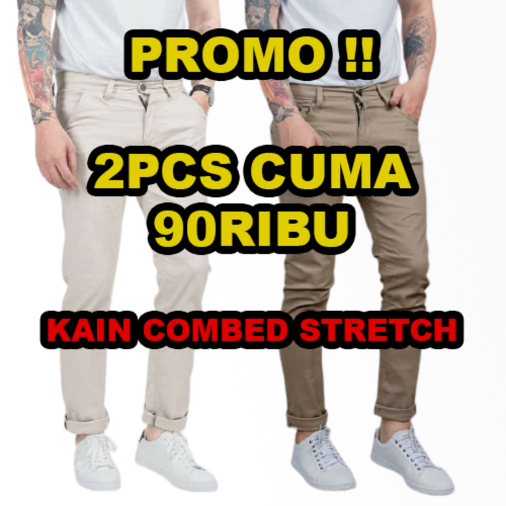 2PCS CUMA 100ribu REAL CELANA CHINO COMBED MELAR STRECTH