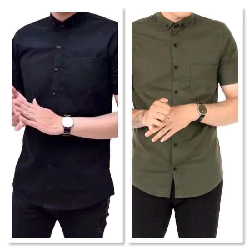 Paket kemeja pria 45 ribu isi 2pcs lengan pendek kemeja polos pria formal kantoran katun Distro GARANSI 100%