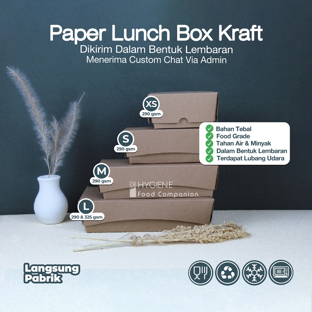 PAPER LUNCH BOX / KOTAK MAKAN KERTAS LAMINASI ECO KRAFT SEMUA UK