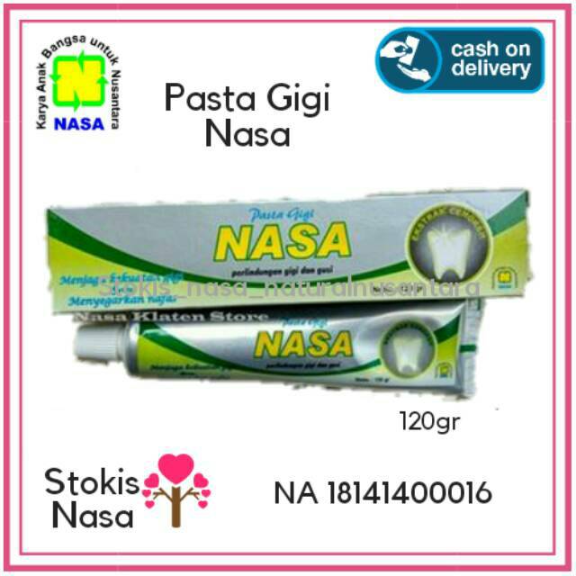 Pasta Gigi NASA merupakan pasta gigi atau odol herbal yang mengandung minyak aroma alami yang memiliki rasa dan bau yang segar, menjadikan mulut menjadi harum dan menghilangkan bau tak sedap, serta mengandung Anti decay agent (Zat anti pembusukan), yang menurunkan jumlah bakteri di mulut dan mencegah proses pembusukan.
