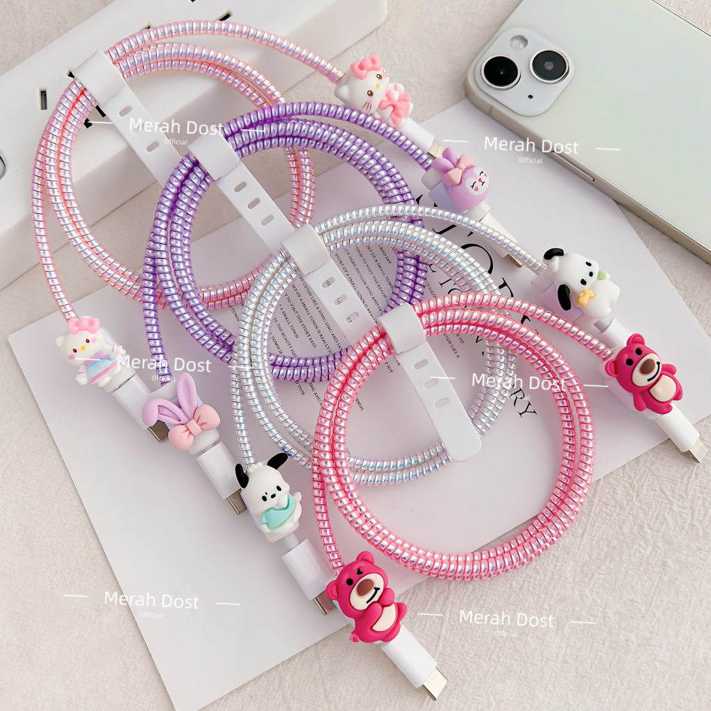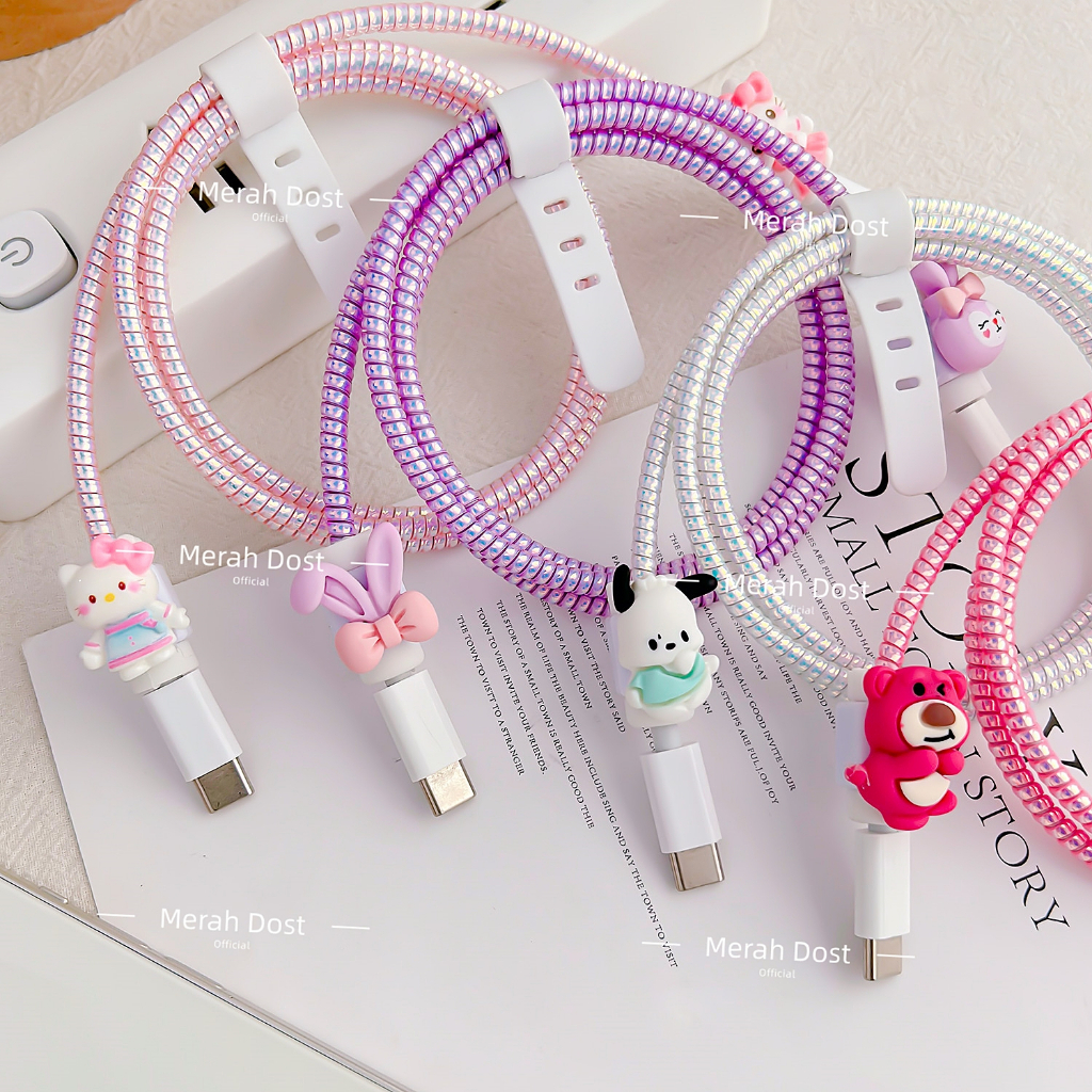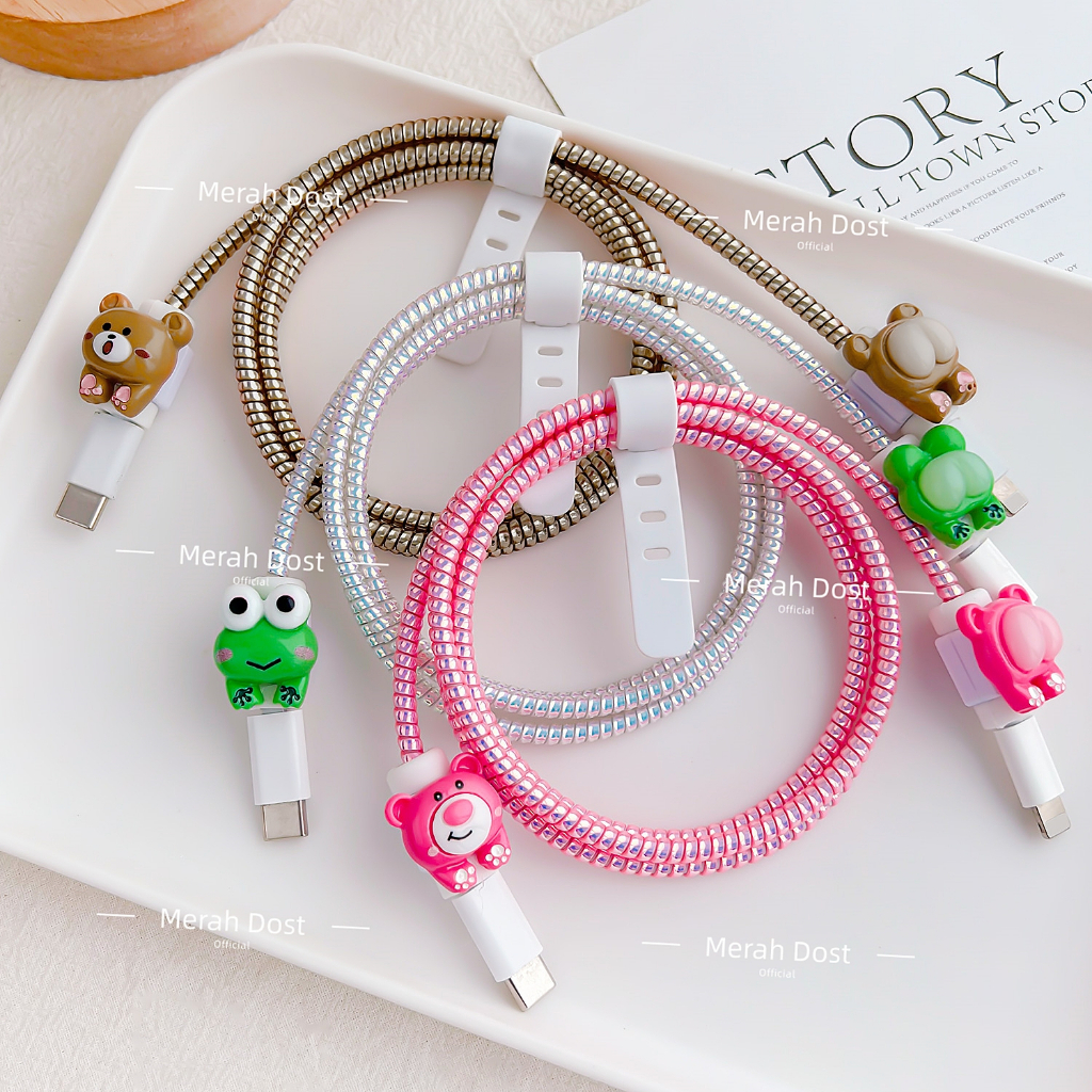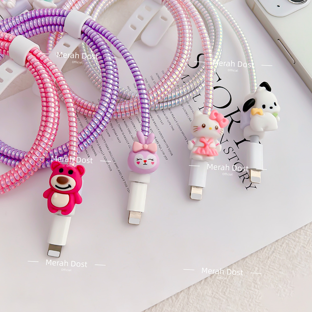 Pelindung Kabel Charger Kabel Data Kawat Kabel Data HP Untuk Iphone Samsung Xiaomi Oppo Huawei Ugreen Android Universal Motif Kartun