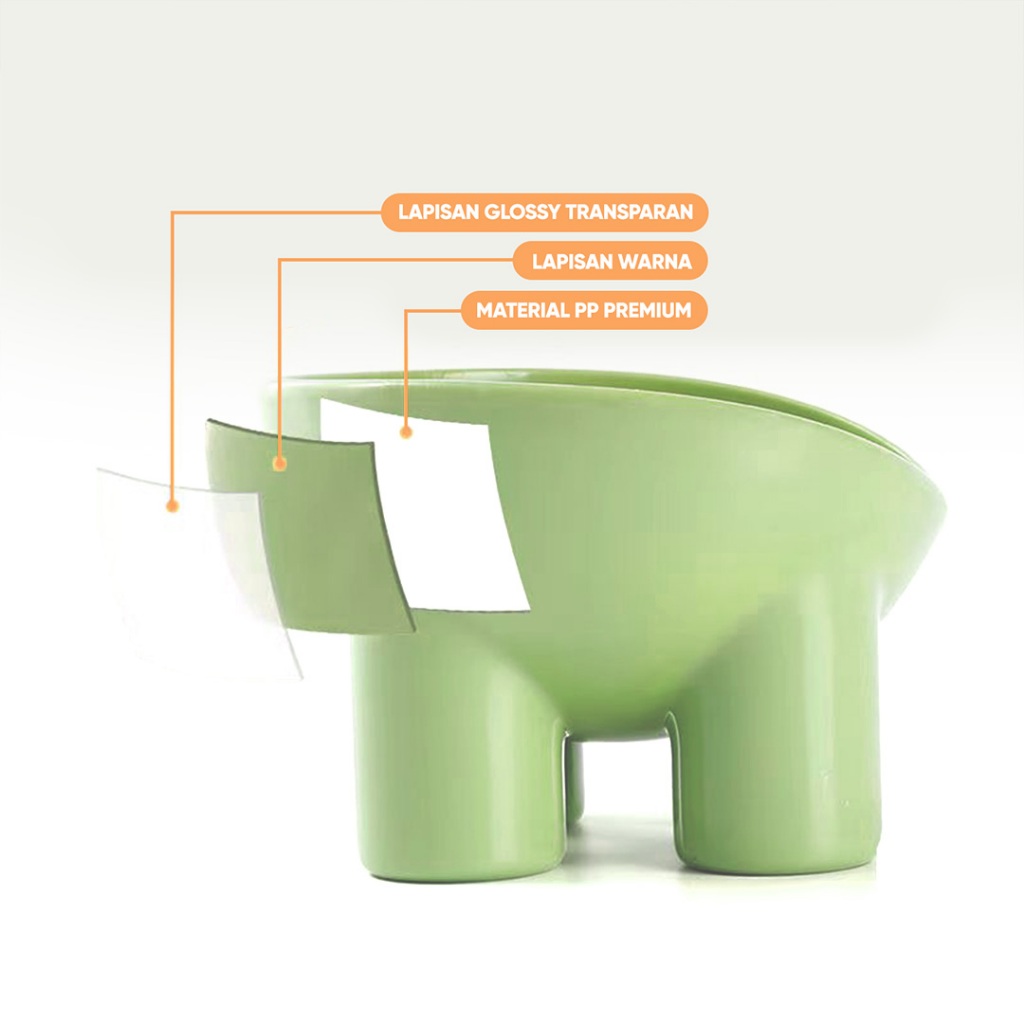 - Desain mangkuk tersambung dengan bagian kaki, sehingga kokoh dan mangkuk tidak mudah jatuh