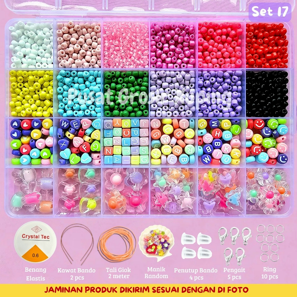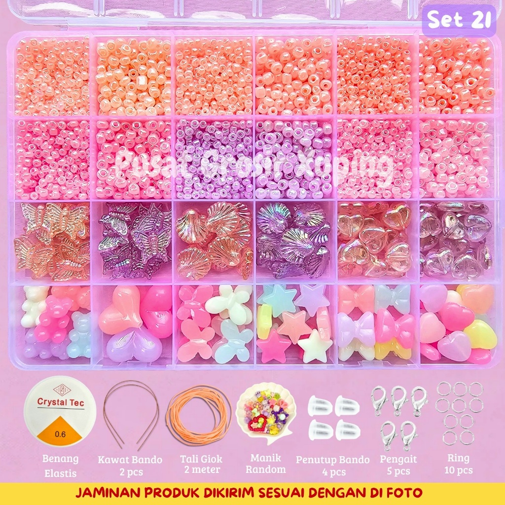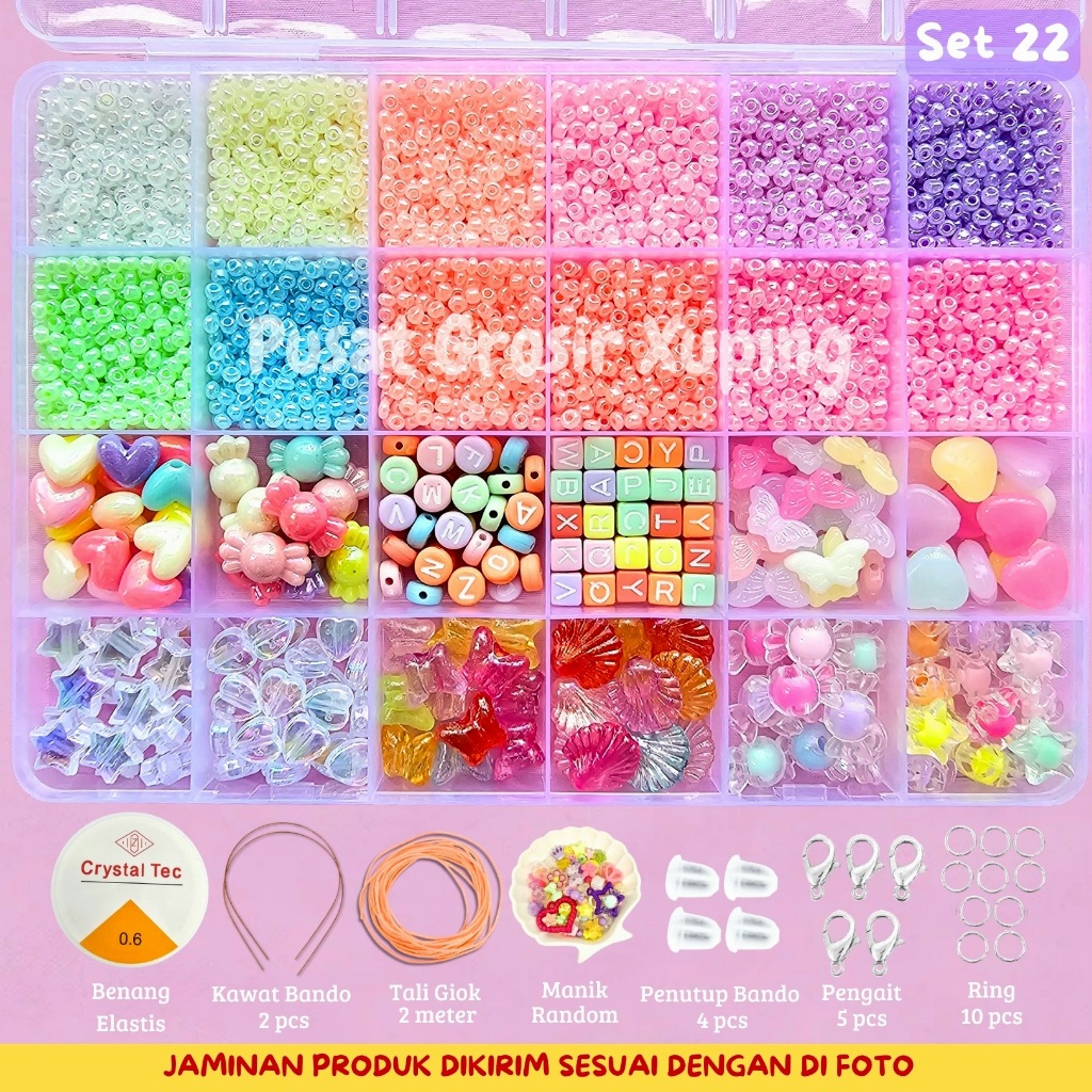 Beranda » Produk » PGX – DIY Craft Kit Gelang Manik Manik Aesthetic – Manik Manik Pasir 1 Box Lengkap – Set Pernak Pernik Meronce Mote – SM001