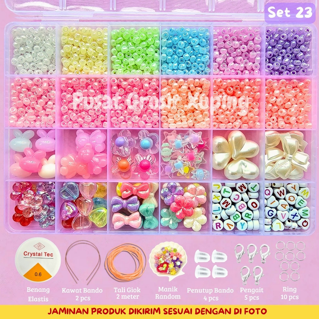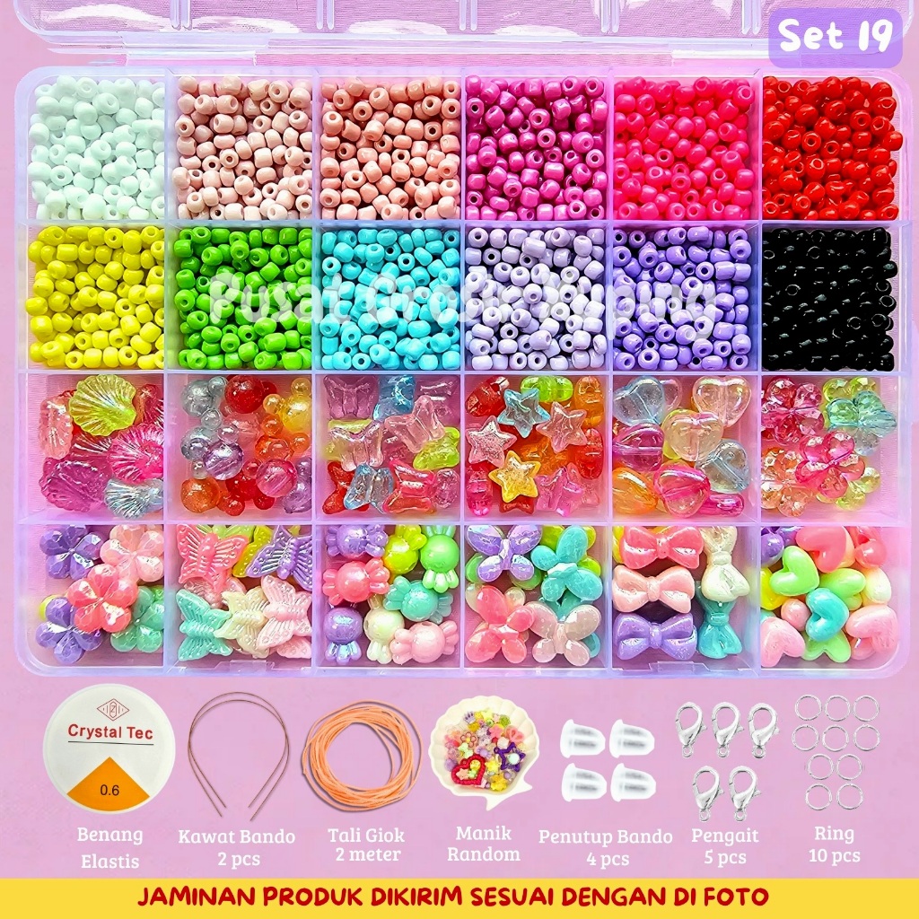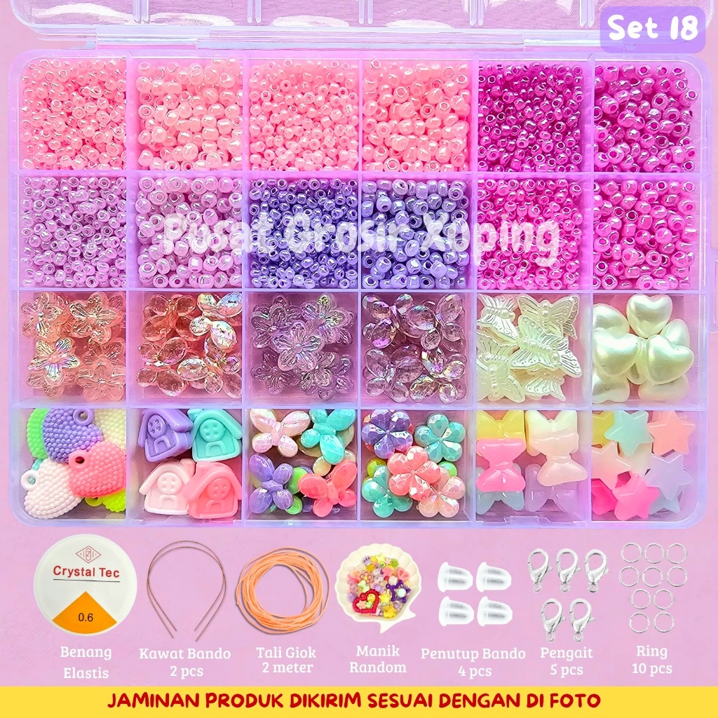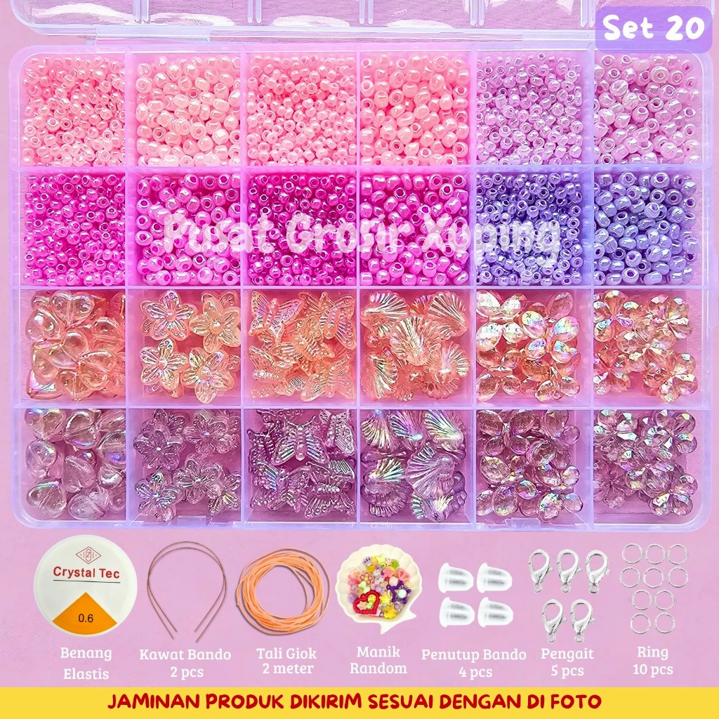 Beranda » Produk » PGX – DIY Craft Kit Gelang Manik Manik Aesthetic – Manik Manik Pasir 1 Box Lengkap – Set Pernak Pernik Meronce Mote – SM001