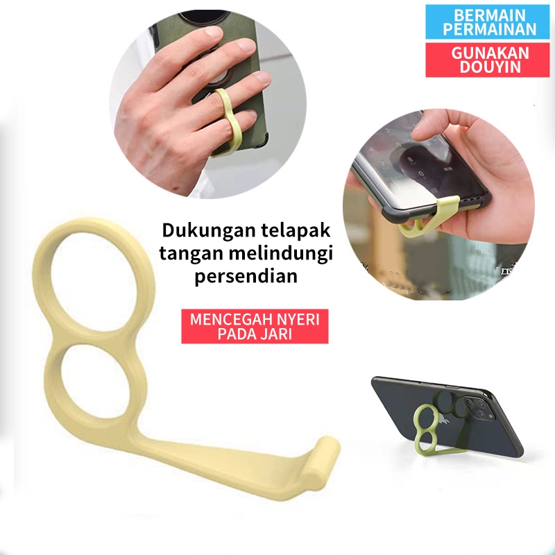 -Membantu menjaga tangan tetap diam saat mengambil foto Selfie dan video.Letakkan pegangan telepon di bagian belakang tangan Anda seperti cincin.