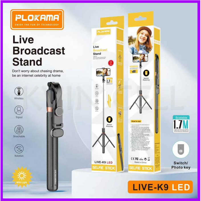 PLOKAMA K9 LED Tongsis Tripod Bluetooth Selfie Stick 4 in 1 Led Lampu Remote Multifungsi 3 in 1 170cm 160cm 1.7 Meter With Fill Light