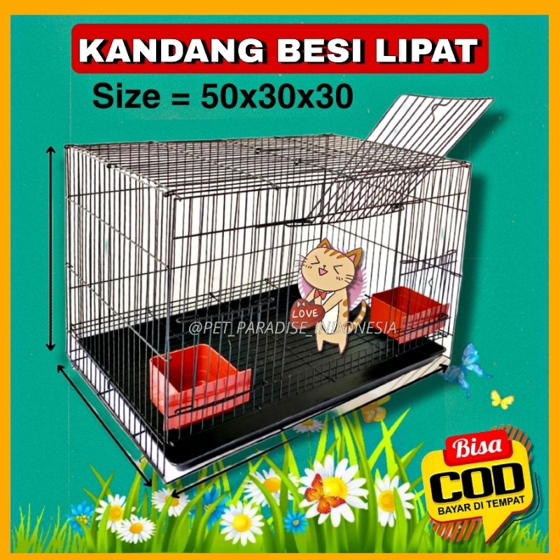 PPI- Kandang Besi Lipat 50x30x30 Umbaran Kandang Kucing Kelinci Hamster Burung Musang Anjing Kandang Hamster Sangkar Burung Kandang Burung