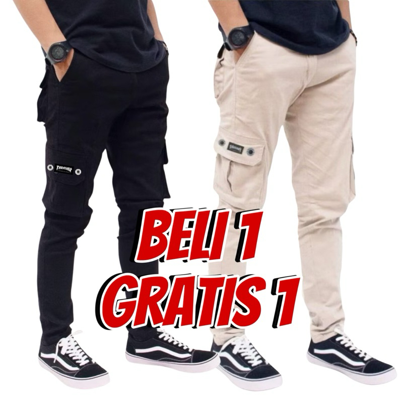 PROMO [BELI 1 GRATIS 1] Celana Cargo Panjang Pria Slimfit Dewasa Tidak Melar Size 28-38 Army Moca Hitam Krem Abu TERLARIS
