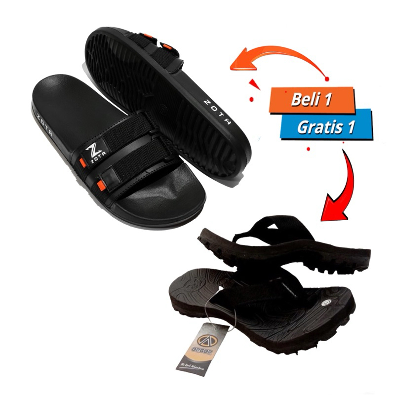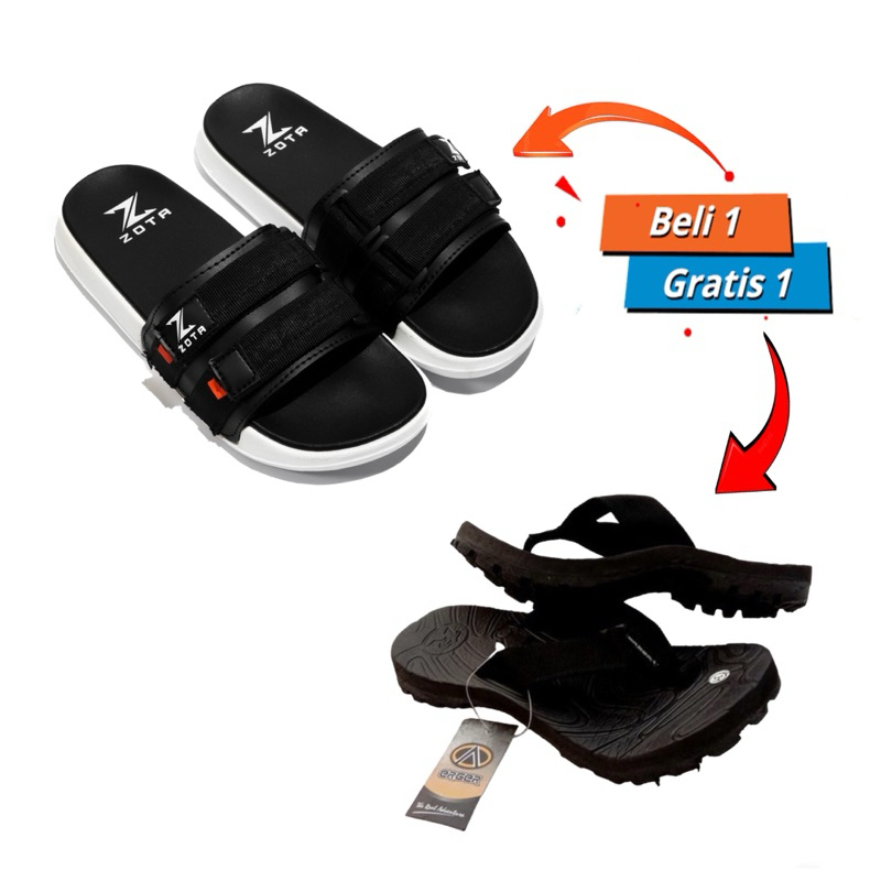 PROMO!!! Beli 1 Gratis 1 Sandal Slide Sandal Jepit Slop Pria Wanita Terbaru Murah Sendal Slip On
