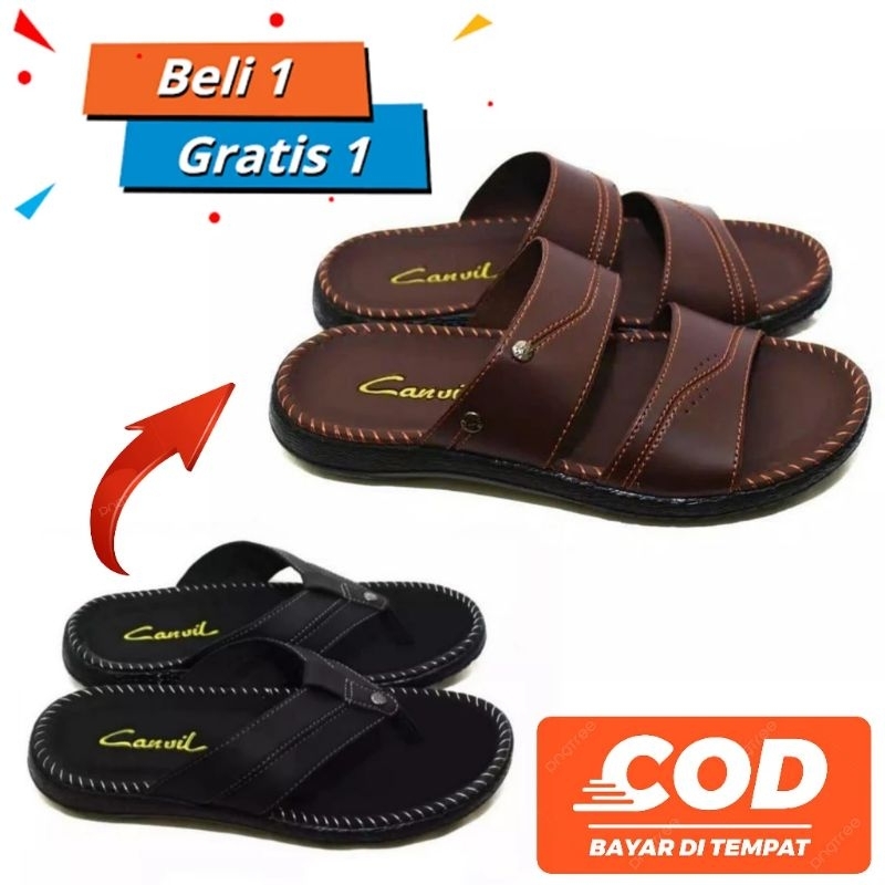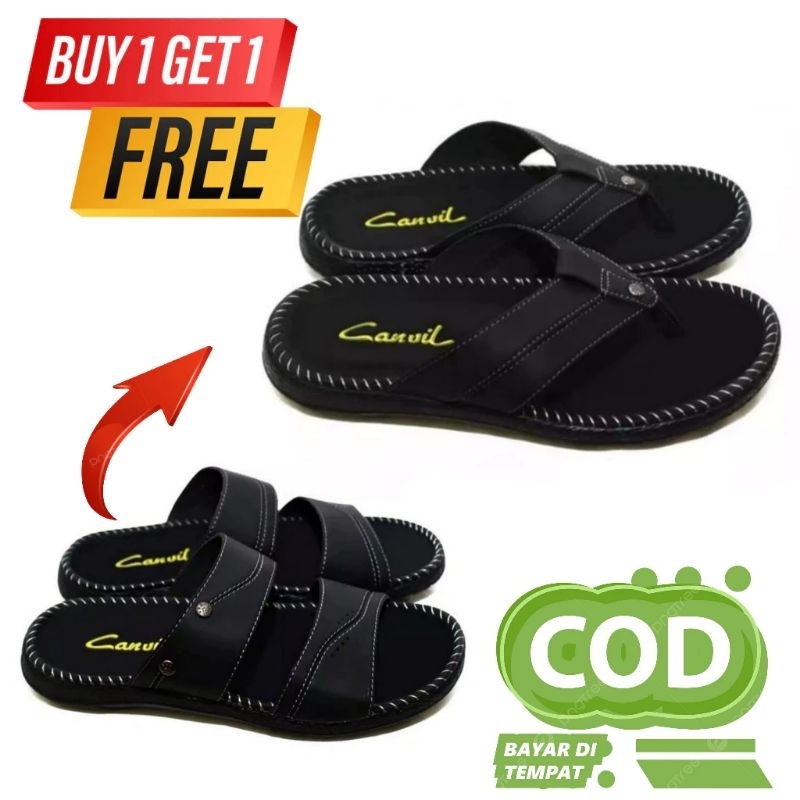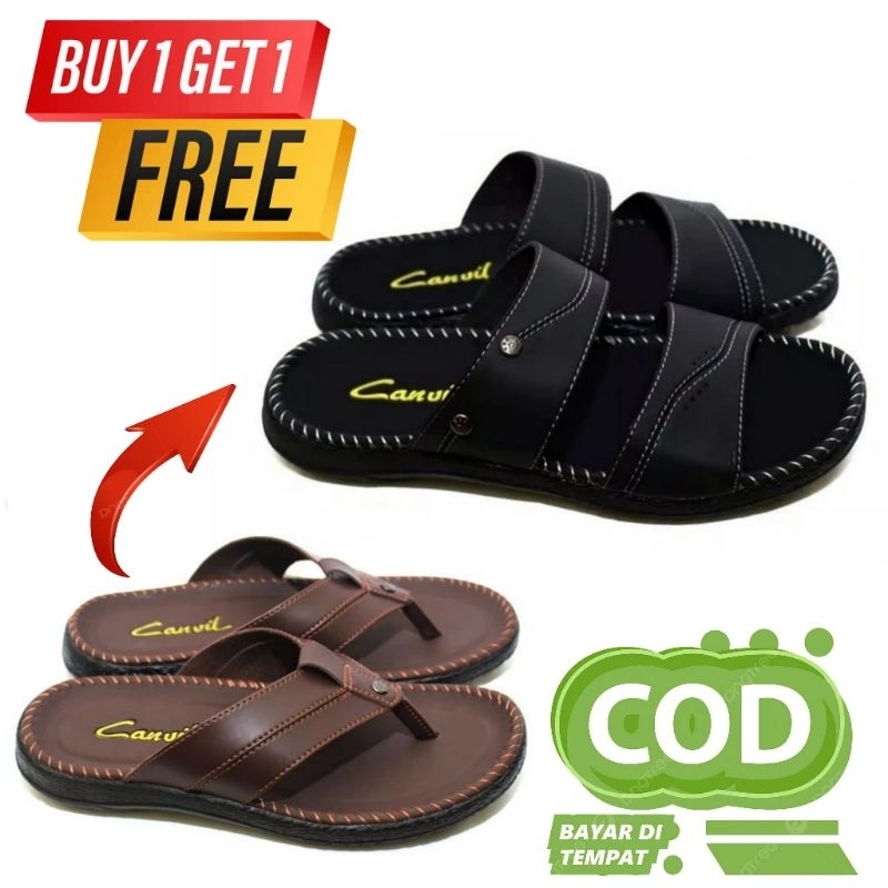 PROMO BELI 1 PASANG GRATIS 1 PASANG BUY1 GET1 SANDAL PRIA FREE BOX SANDAL KULIT KARET VIRAL SANDAL KASUAL PRIA FORMAL