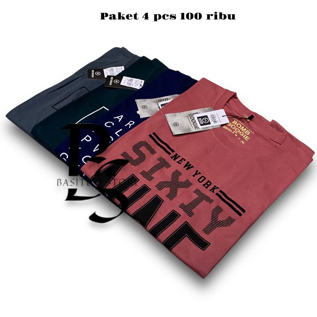 Promo Paketan Kaos 100 Dapat 4 MixBrand NVD BBG Original Distro Pria Wanita Terbaru Terlaris Termurah 2024 Bahan Semi Cotton 28s Ukuran M L XL XXL XXXL Jumbo Unisex