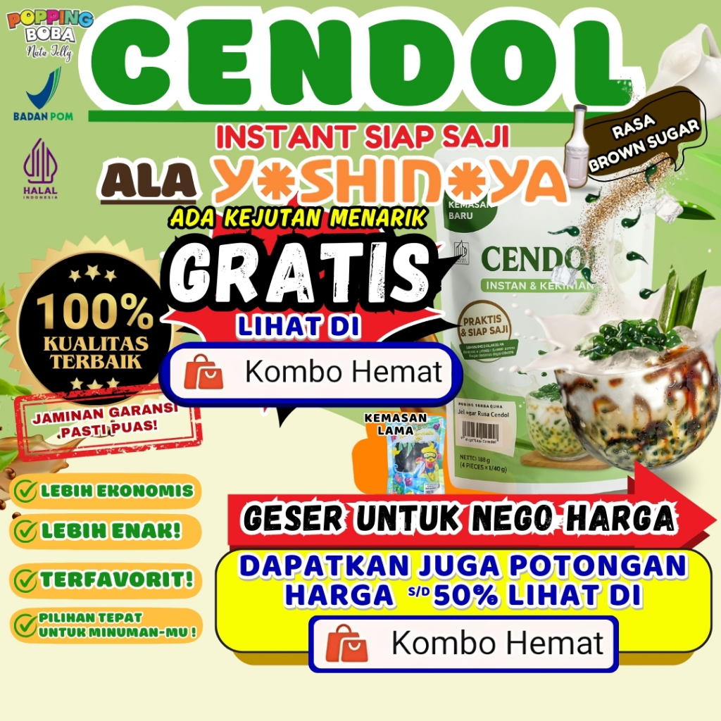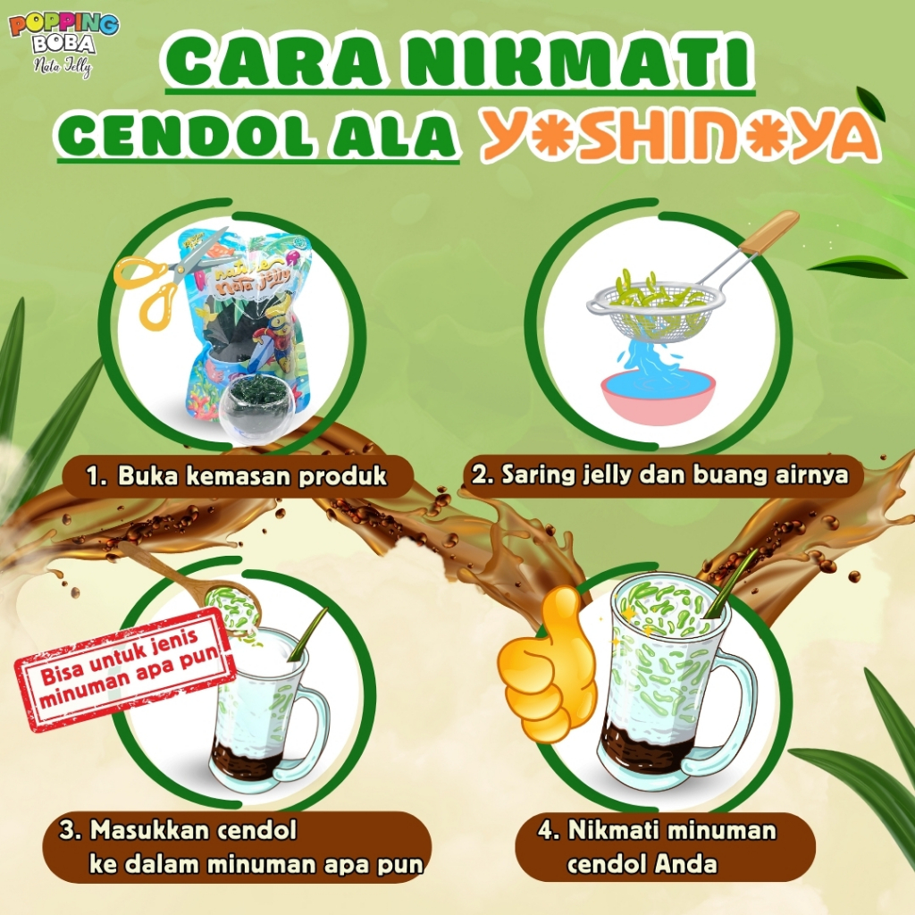 Jelly cendol instant siap saji ala Y*shin*ya dengan cita rasa otentik khas cendol tradisional asli.