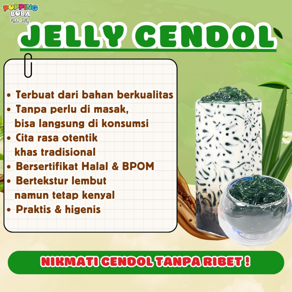 Jelly Cendol Dawet Hijau | Instan Siap Saji | Tanpa Perlu Dimasak | Untuk Topping Minuman | Popping Boba Nata Jelly